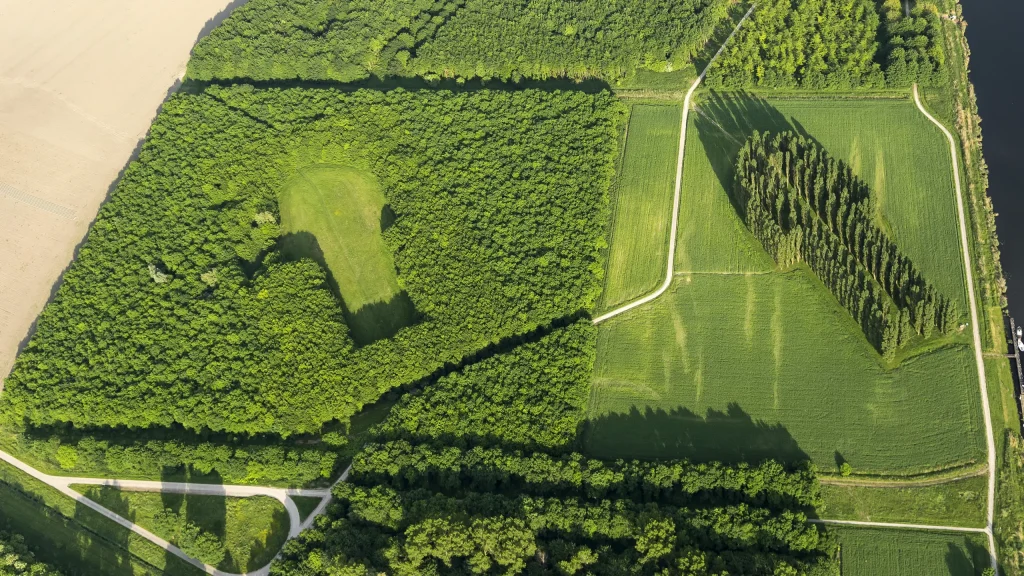 The Green Cathedral offers a clear articulation of this position. Its Gothic reference invokes a typology traditionally associated with endurance, authority, and stone. Boezem’s intervention dismantles those expectations. The plan is architectural, but its realisation depends on growth, maintenance, and inevitable decline. Columns are replaced by trunks, vaults by open sky. The work exists only through continual change.