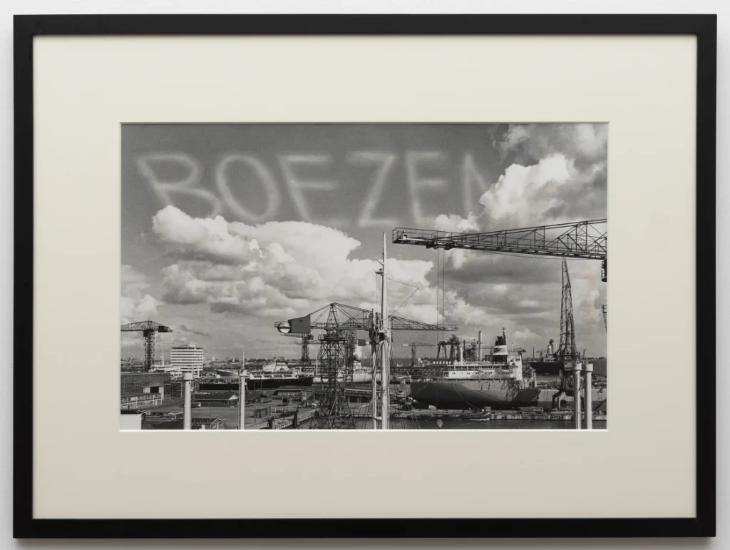 This logic also underpins Boezem’s earlier actions. In 1969, he realised Signing the Sky Above the Port of Amsterdam with an Aeroplane, in which an aircraft traced his name in condensation trails above the city. The gesture was simultaneously declarative and self-erasing. The signature appeared briefly, then dissolved, leaving no lasting mark on the sky. What remained was an experience, perhaps a photograph, and the memory of something that could not be possessed.