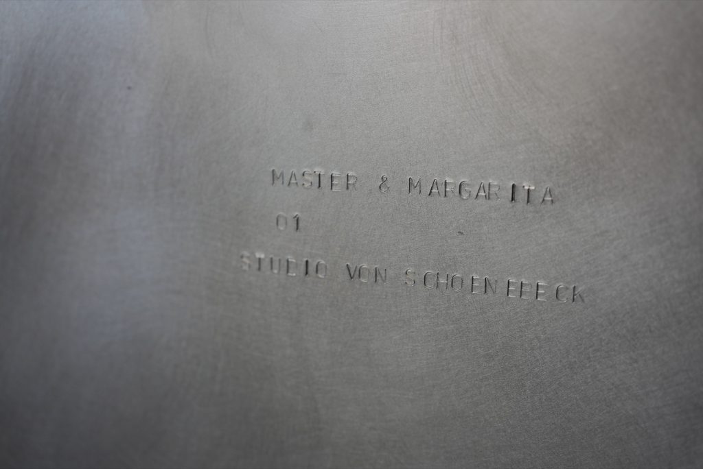 Bulgakov’s story begins at Patriarch’s Ponds, a setting that carries its own mythic weight. Studio von Schoenebeck nods to that atmosphere through the idea of an inscribed surface functioning like a bench plaque, not as a literal reference, but as a permission to remember. If the novel’s world does not offer benches with dedications like London parks, these chairs propose a contemporary equivalent: an object you return to, a place where private devotion can be staged in everyday life.