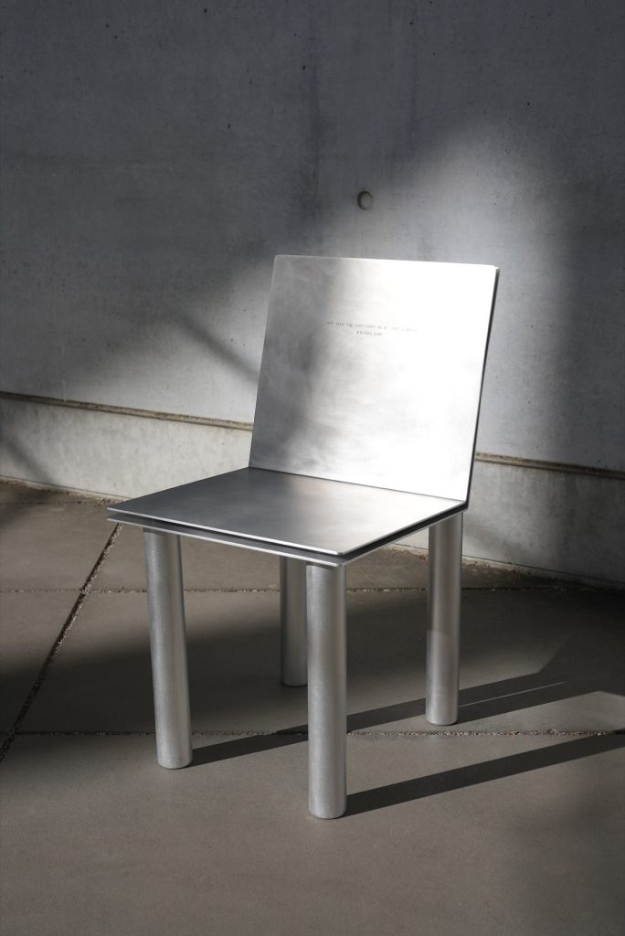These inscriptions echo the novel’s devotion and its belief in the endurance of language, a word that continues to live even after being burned. The project treats the chair not only as a functional typology, but also as a small architectural site for encounter, intimate in scale yet expansive in implication.