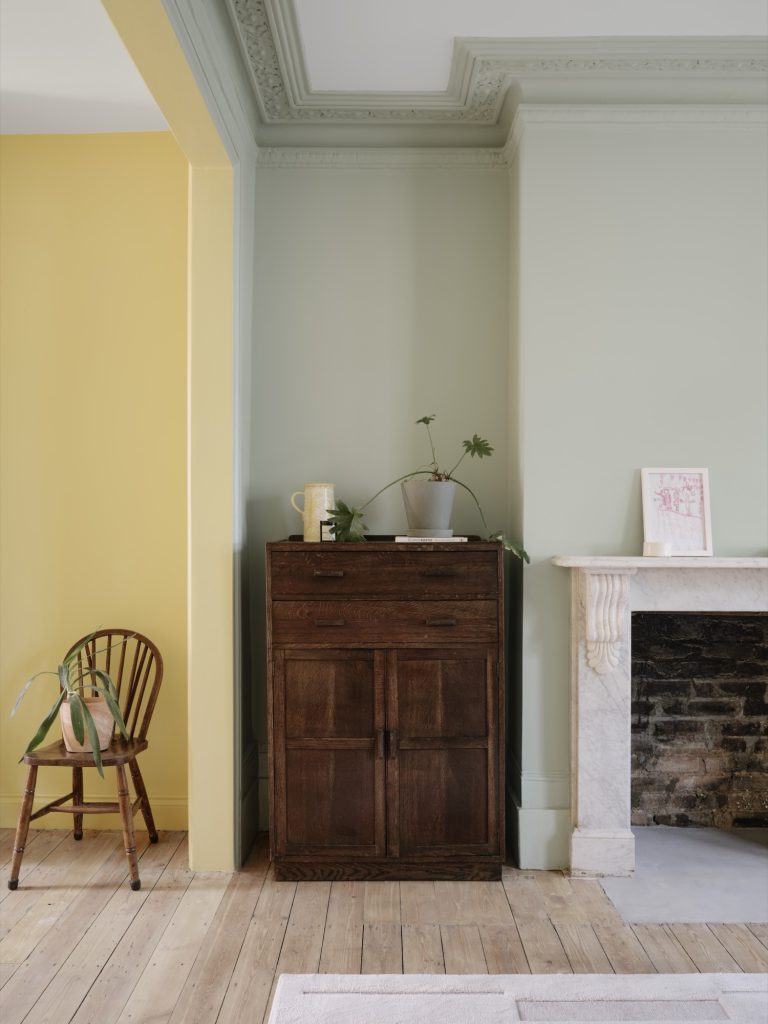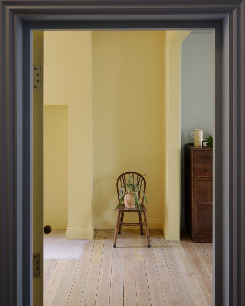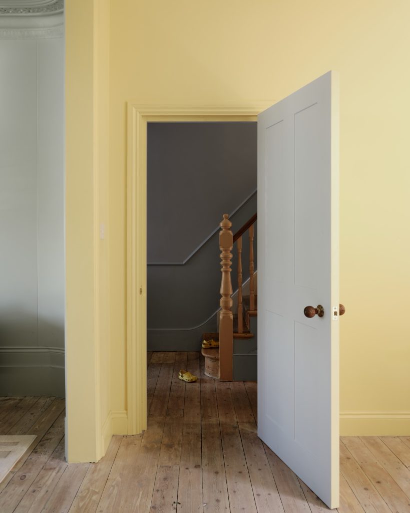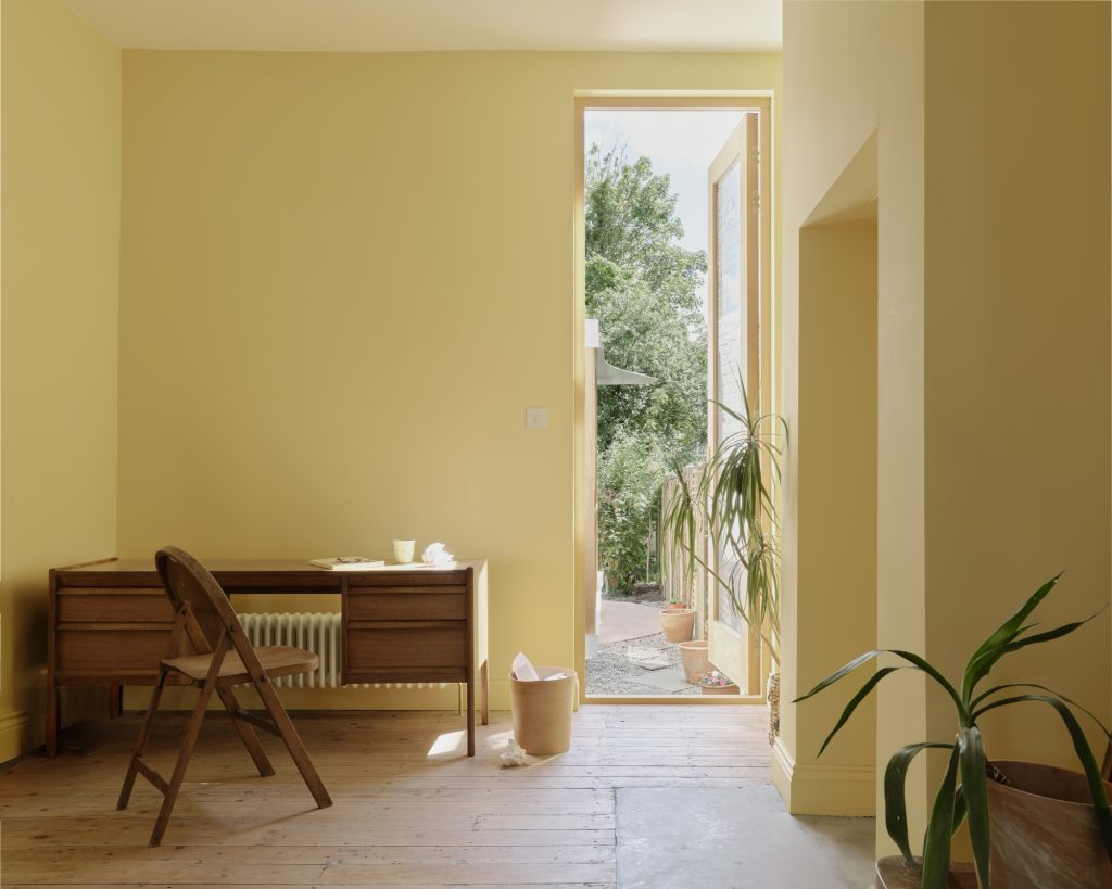 The renovation also addressed the rest of the ground floor. A former kitchen at the front of the house was restored to its intended use as a peaceful living and study room painted in soft butter yellow. A compact WC and utility space were slotted efficiently into the centre of the plan, contributing to the home’s new sense of clarity and flow.