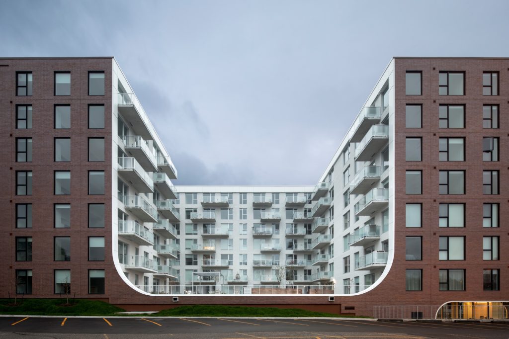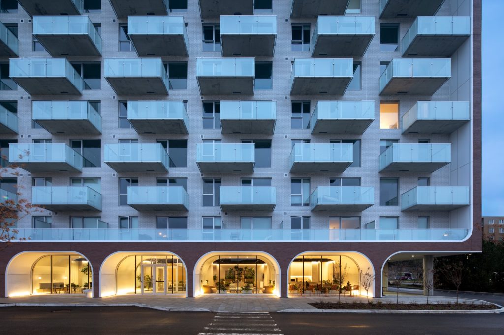 MELLEM Les Trembles housing in Gatineau features arched brick base by ACDF Architecture