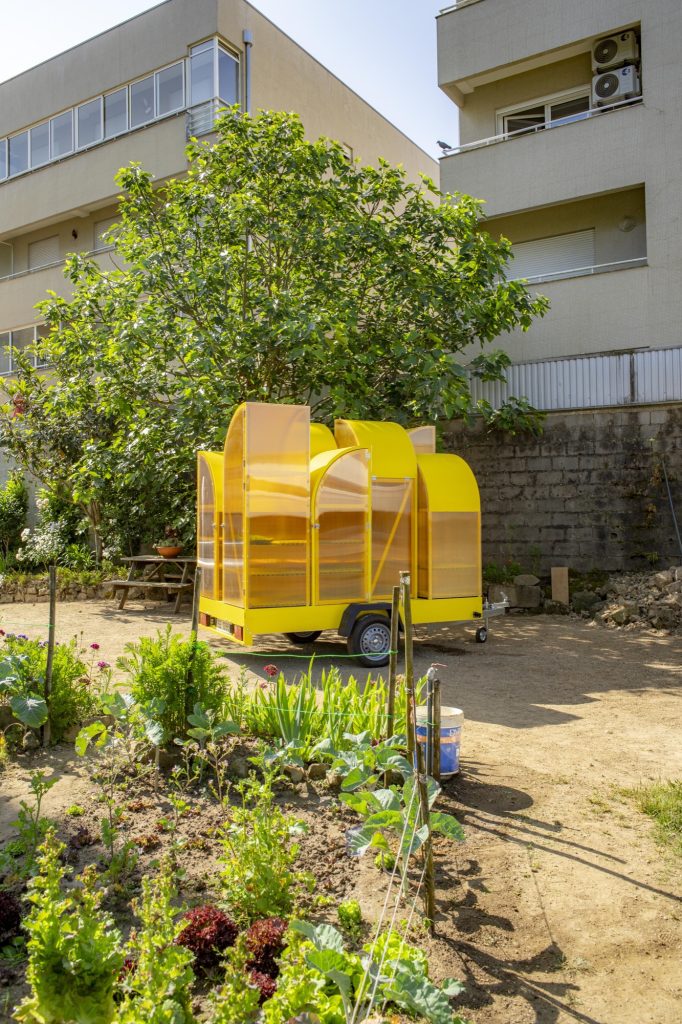 In motion, the project acquires a different agency. Rolling through neighbourhoods, it transforms into a mobile manifesto for urban agriculture, making visible the often overlooked networks of community gardens scattered across Braga. Seeds are not merely cultivated but shared, extending the project’s impact beyond its initial site. The act of movement converts the greenhouse into a vehicle of exchange, circulating biodiversity and knowledge with equal intent.