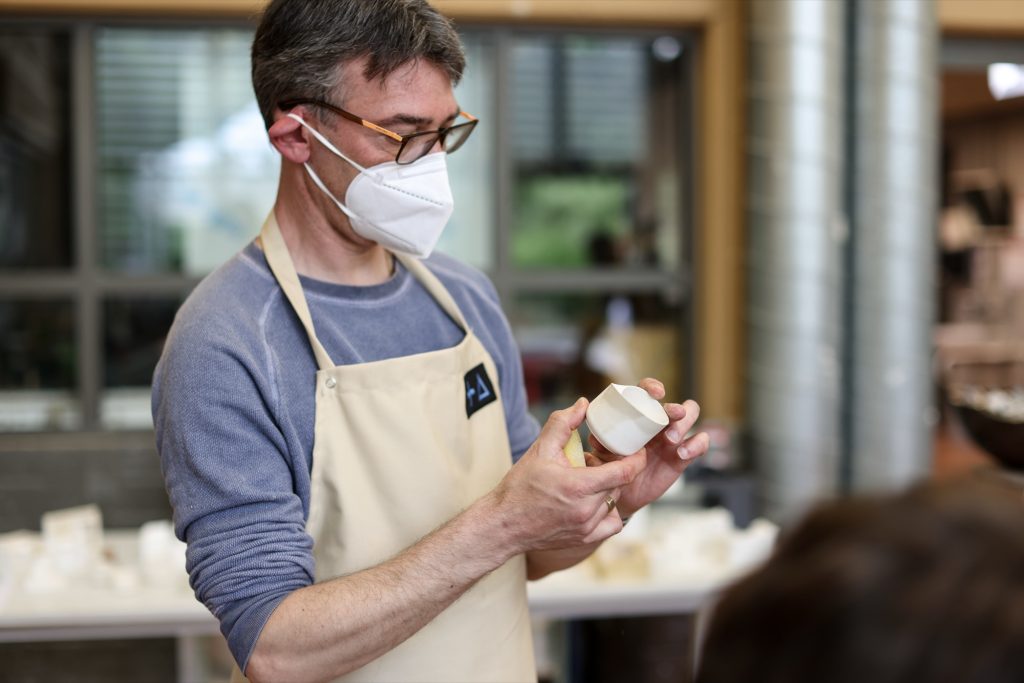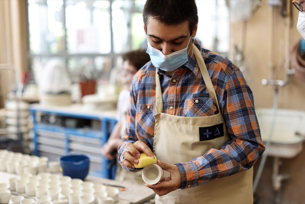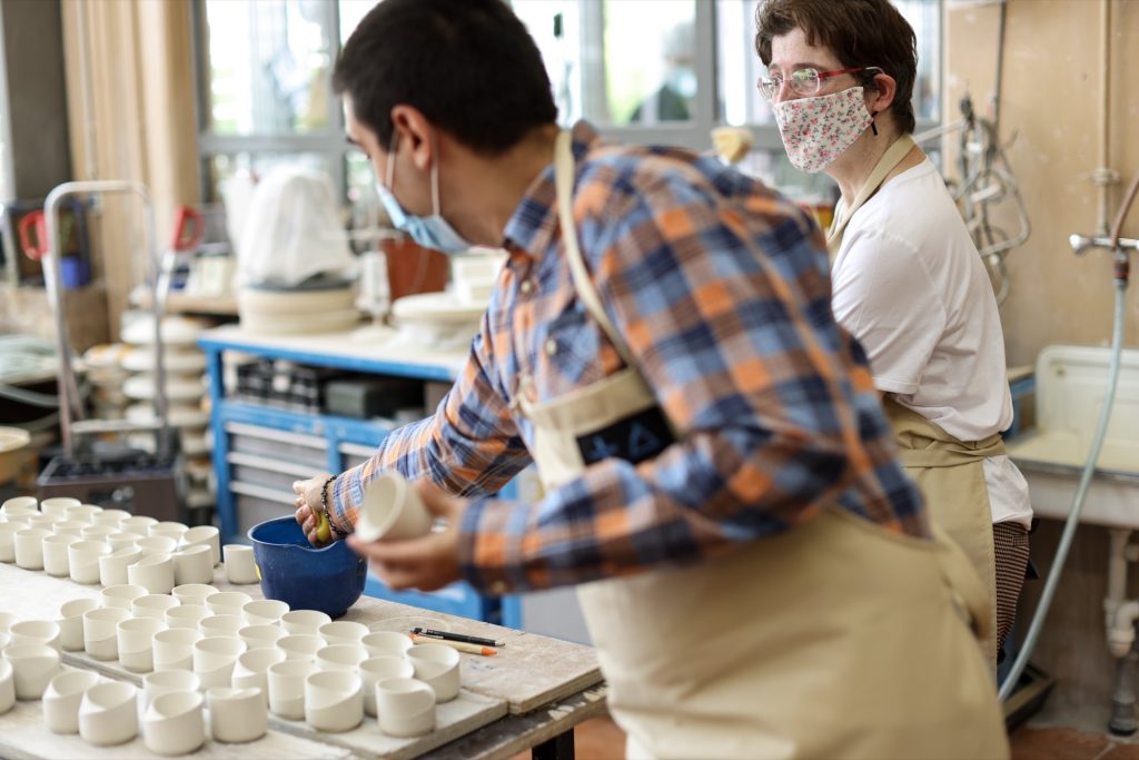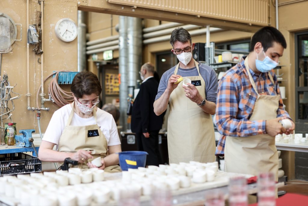 Möbino’s story is also a story of authorship and labour. Created in collaboration with Ateliers Kräizbierg in Dudelange, each cup is hand-sculpted and glazed in the workshop, giving every piece slight variations that underline its makerly quality. The cooperative is dedicated to the professional and social inclusion of people with special needs, and the cup frames that mission as part of its design intent, not a footnote.