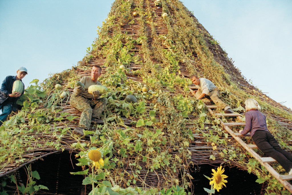 Another view of hay-based monumental structures by Nikolay Polissky, demonstrating collective form-making. Credit: Art Focus Now.