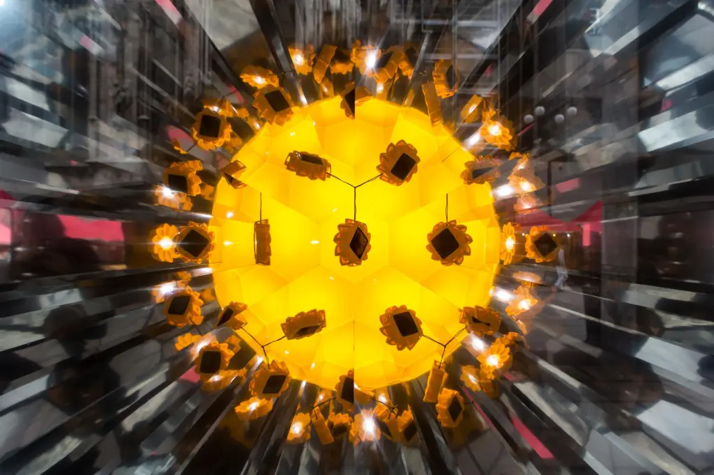 When the Turbine Hall at Tate Modern opened its doors in October 2003, more than two million visitors entered a space that was no longer merely an exhibition hall but an interior sky. A gigantic semi circular sun, composed of nearly 200 mono frequency lamps emitting a warm yellow orange glow, hovered at the far end of the hall. Reflected by a vast mirrored ceiling, it formed a complete, radiant orb. Artificial mist permeated the 155 metre long expanse, transforming the industrial void into an atmosphere of suspended twilight.