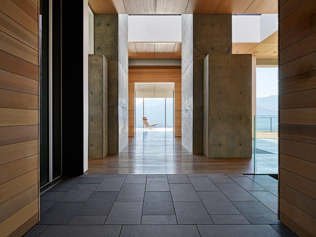 Open interior with wooden structure and high ceilings, exemplifying human scale and flow (similar Bohlin residential example). Credit: © Bohlin Cywinski Jackson.