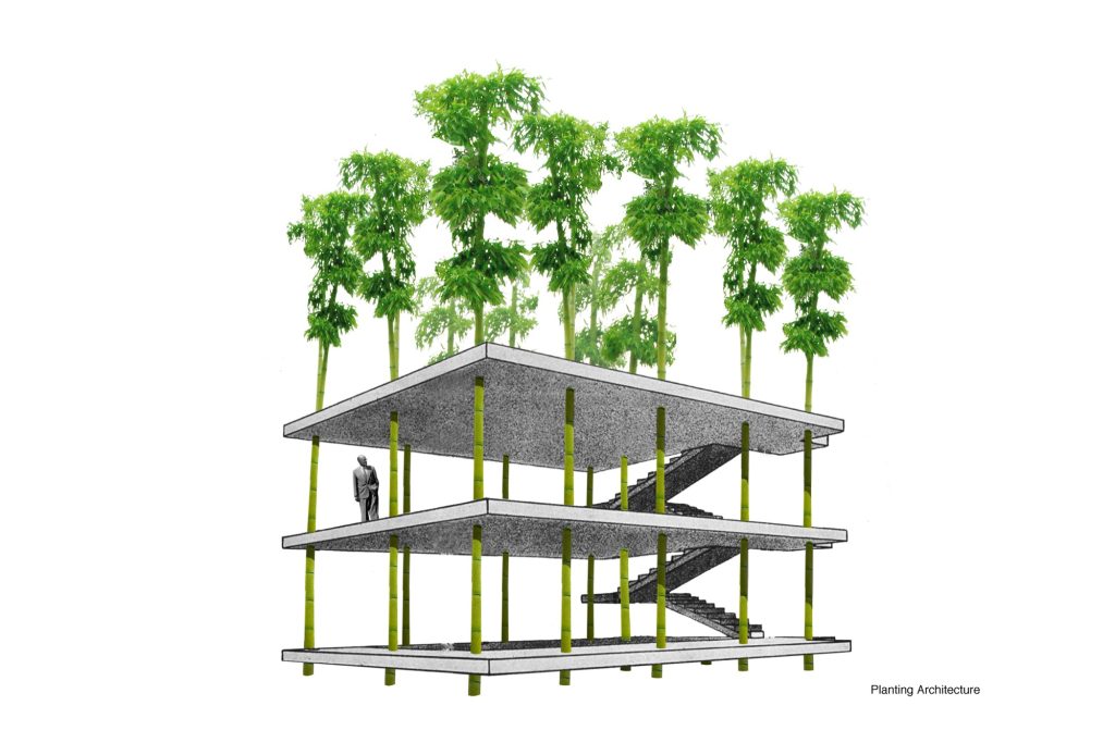 In standard practice, construction means replacement. Soil is cleared, foundations erase the ground, materials arrive as finished commodities. Here, the structure begins with life already in progress. That changes the ethics of making. The work does not dominate nature; it operates with it, accepting that the city will not stay the same size, the same texture, or the same silhouette. Weather and growth become co authors. The project’s “materiality” is not only what you install, but what you cultivate.
