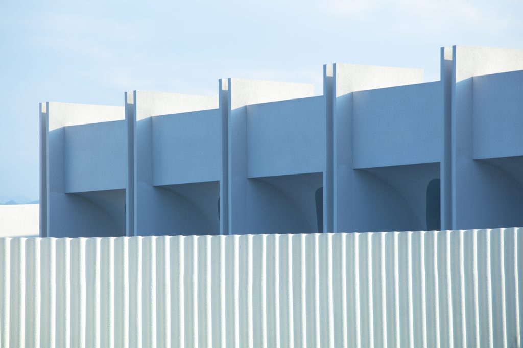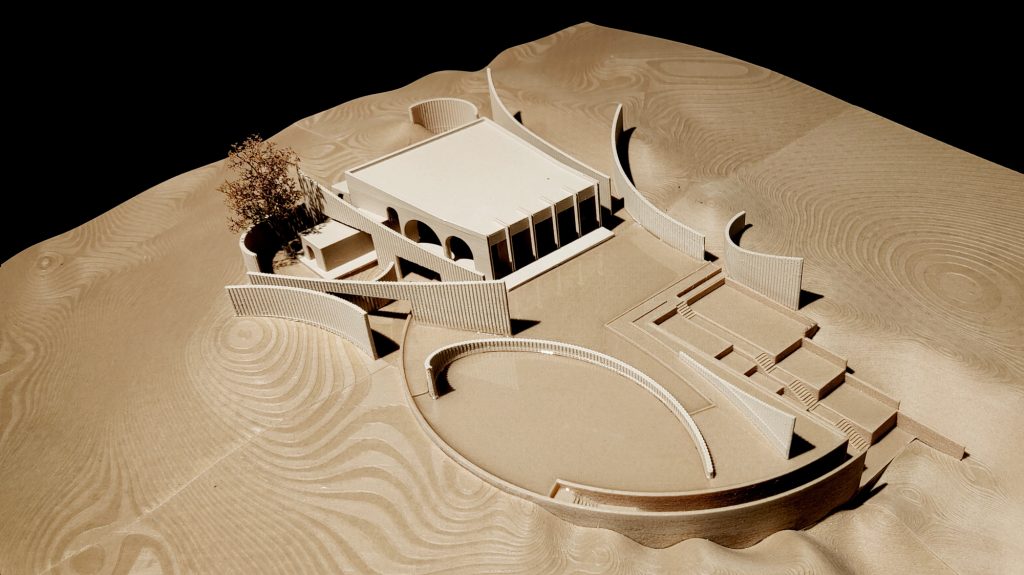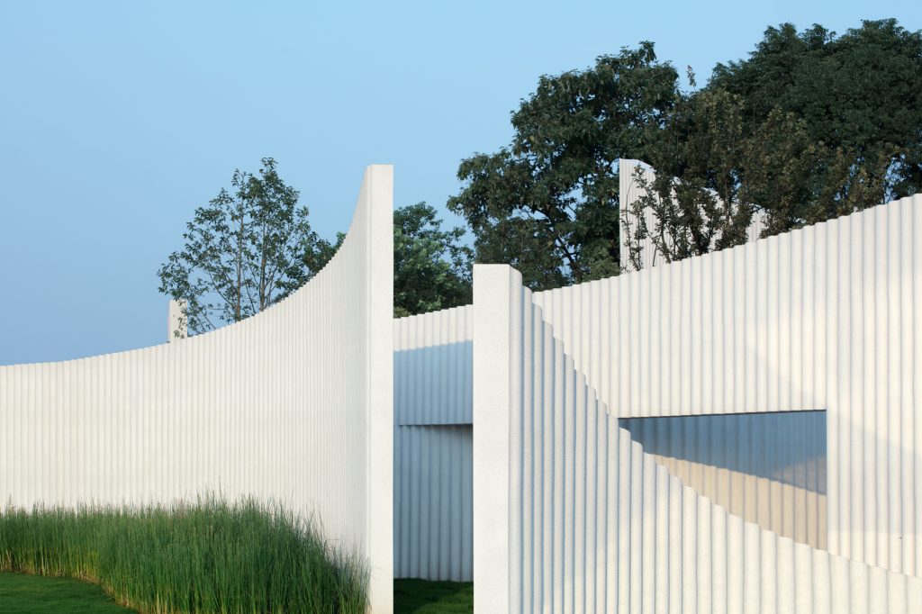 A series of curled, ridge-like forms traces the site and folds into the ground, translating topography into an architectural geometry that can be walked. The ridges are not treated as sculptural add-ons; they act as organisers, setting up routes, pauses, and oblique views that encourage wandering rather than direct circulation. Their corrugated concrete surfaces sharpen this effect, catching daylight and artificial illumination so that shadow becomes part of the composition – an extension of the site’s textures rather than a contrast to them.