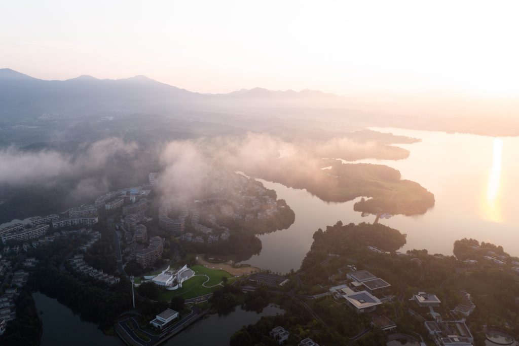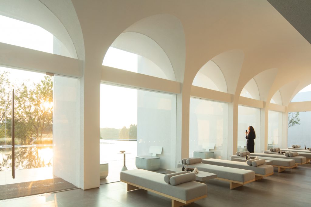 The ambition here is less about adding program than about restoring atmosphere. The design anchors itself in the lake’s shifting shoreline, the soft rise and fall of the terrain, and the region’s visual memory. PLAT ASIA’s point of reference is the spatial logic of shanshui painting, where mountain and water operate as a compositional structure – layering distance, framing movement, and building depth through successive thresholds. From this reading comes the project’s central device: the Ridge.