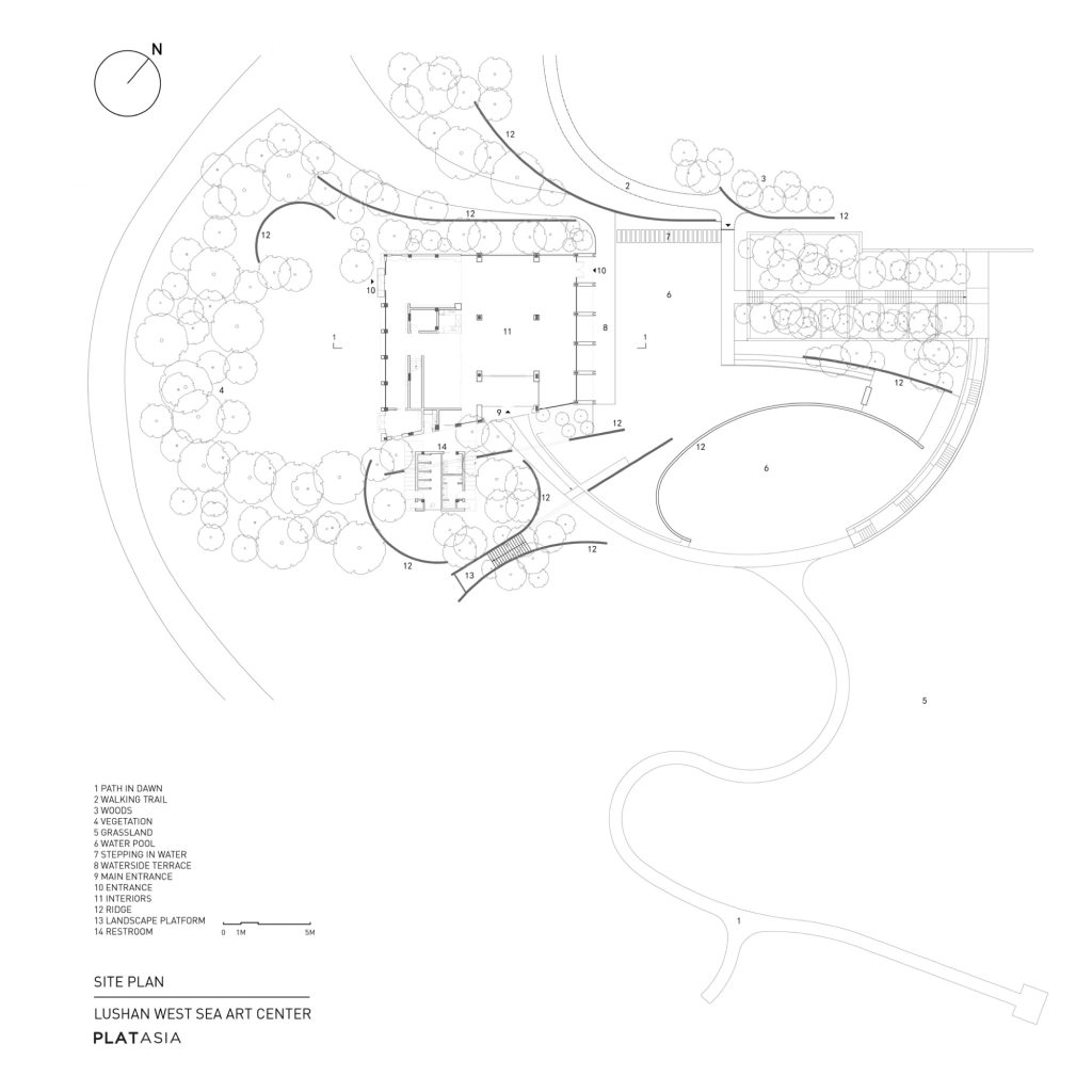 On the lakeside edge of Lushan West Sea Resort in Jiujiang, Jiangxi Province, the Lushan West Sea Art Center reactivates a building that had sat unused for years, turning it into a compact cultural venue for exhibitions, salons, and events. Designed by Beijing-based PLAT ASIA and completed in 2021, the project began as a straightforward request to update the façade and interiors. Site analysis quickly pushed the scope outward, into a complete reworking of the grounds that brings architecture, landscape, and interior spaces into a single continuous experience.