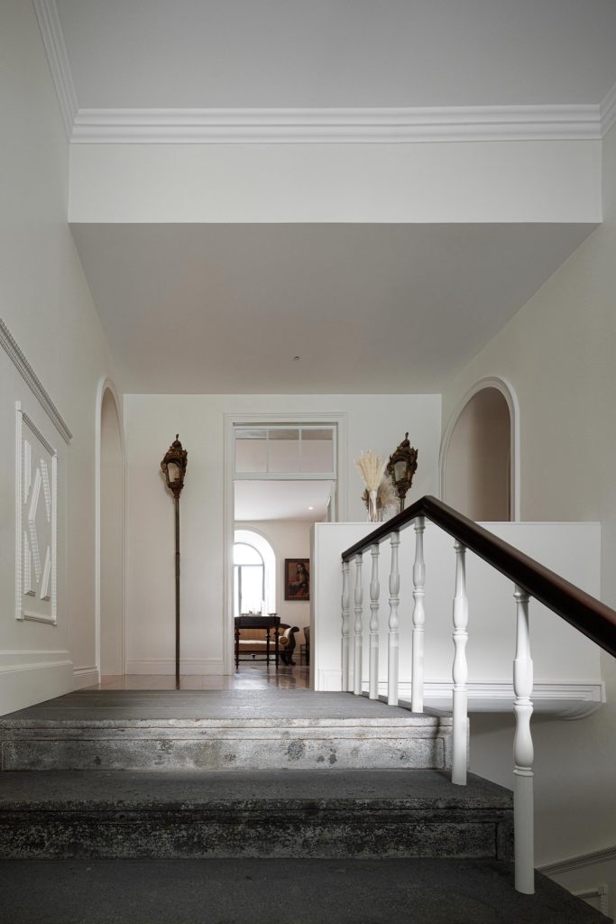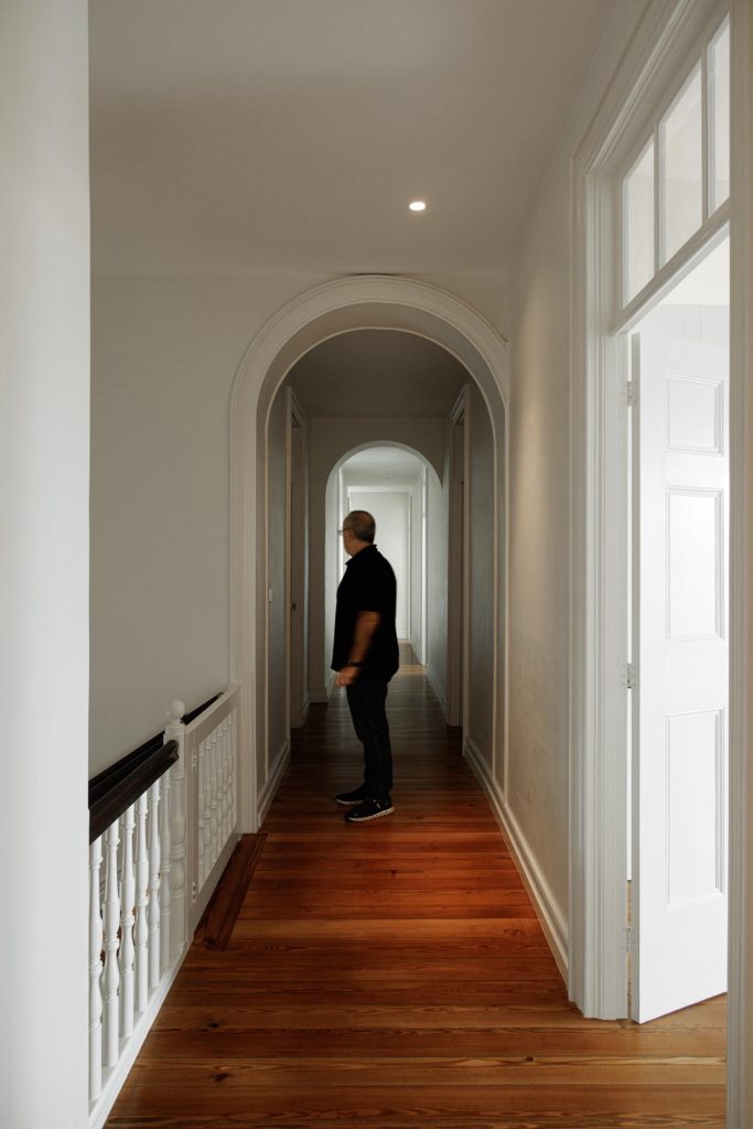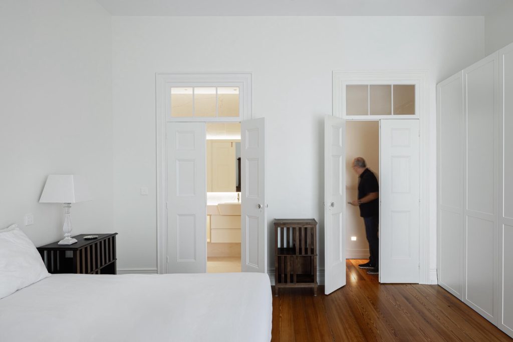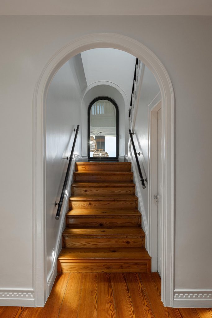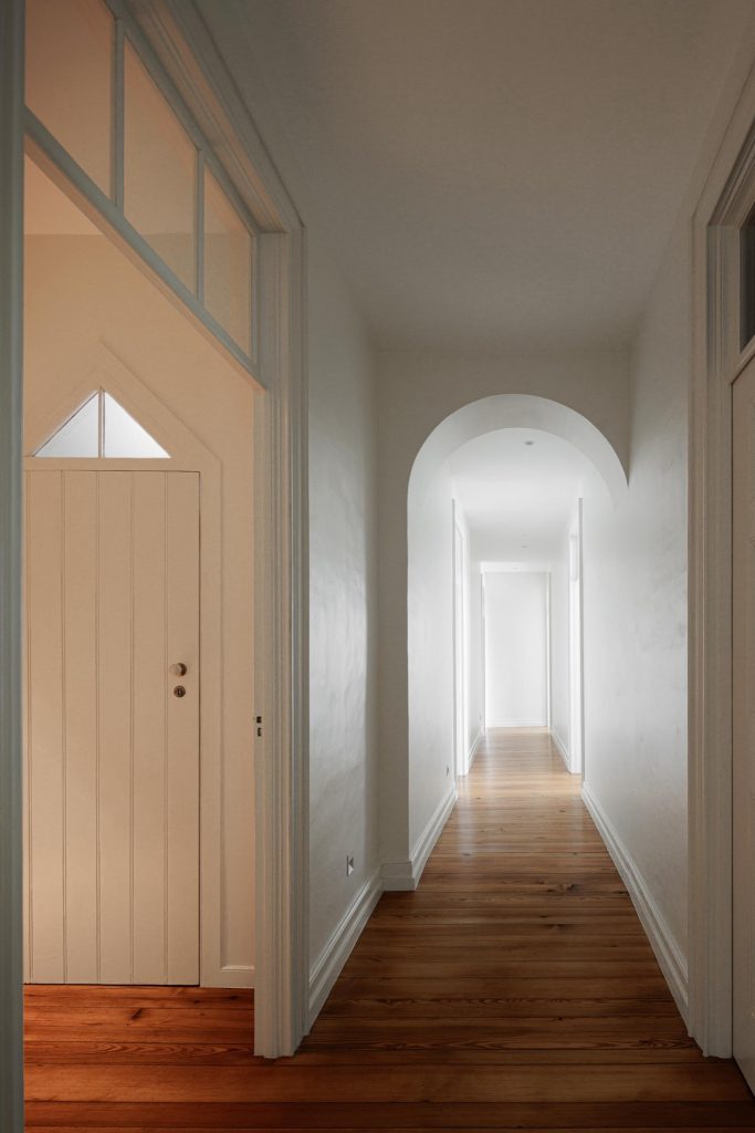 The house unfolds across three levels, organised through a clear vertical continuity. Natural light plays a central role, entering through existing openings and being amplified in spaces of longer occupation. The project prioritises the recovery of original elements wherever possible, including timber floors, window frames, trims and the stairwell, ensuring a continuous reading of the house across time. Private areas gain autonomy through the introduction of en suite bathrooms, while shared spaces become more fluid and interconnected. Movement is clarified and visual relationships between levels are strengthened, allowing daily life to unfold with greater ease.