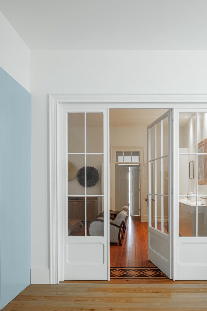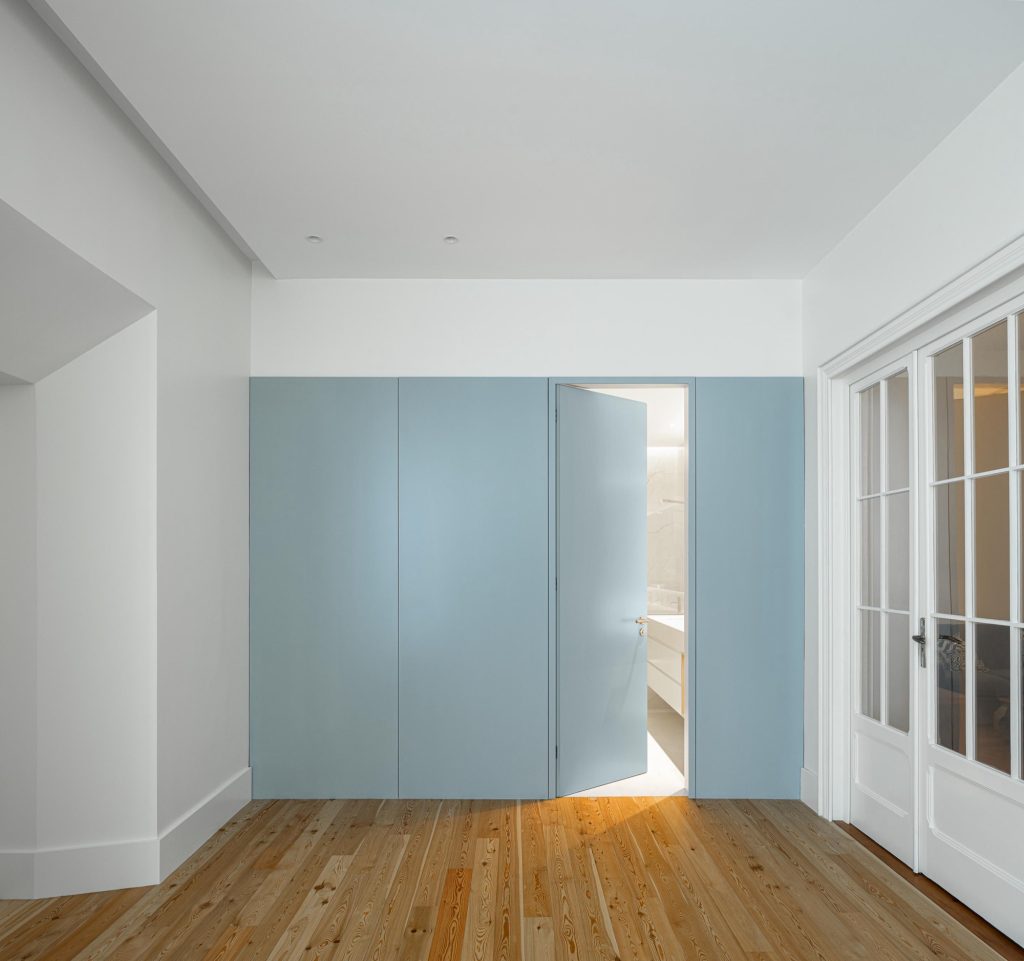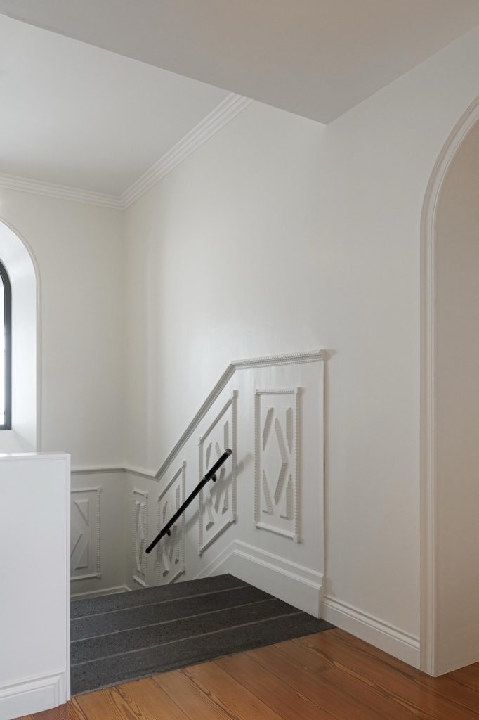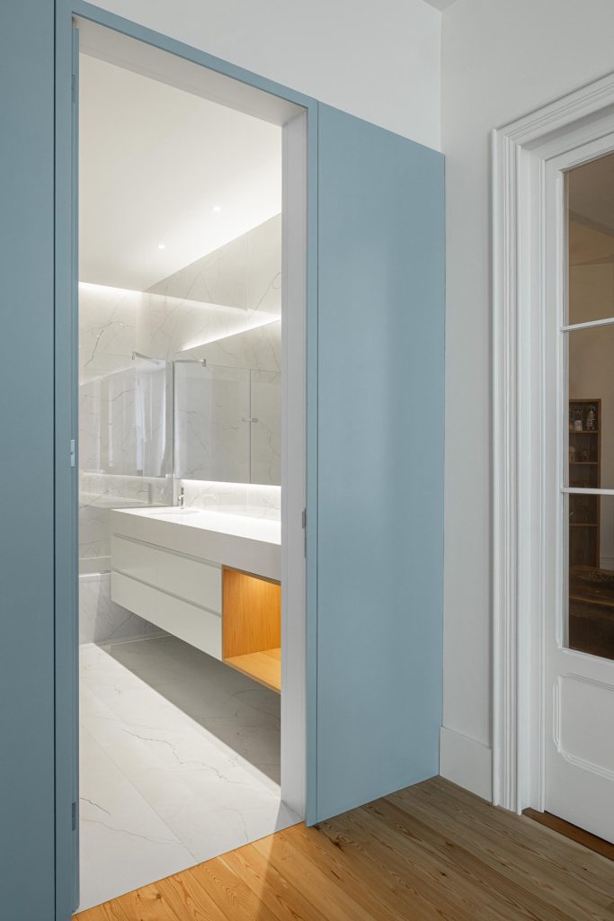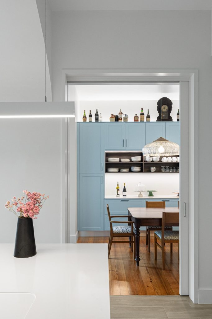 The house unfolds across three levels, organised through a clear vertical continuity. Natural light plays a central role, entering through existing openings and being amplified in spaces of longer occupation. The project prioritises the recovery of original elements wherever possible, including timber floors, window frames, trims and the stairwell, ensuring a continuous reading of the house across time. Private areas gain autonomy through the introduction of en suite bathrooms, while shared spaces become more fluid and interconnected. Movement is clarified and visual relationships between levels are strengthened, allowing daily life to unfold with greater ease.