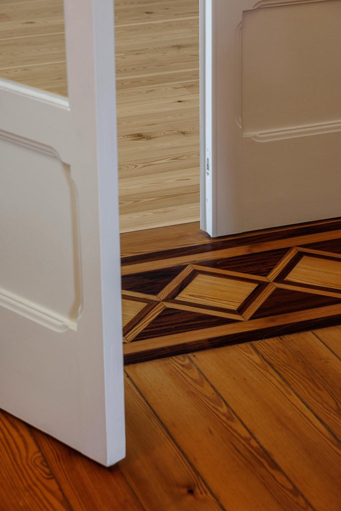The most visible transformation occurs at the rear façade, facing the interior of the plot. Here, the intervention becomes more expressive, though still controlled. Materials are selected to remain in dialogue with the existing palette, where stone, plaster and timber define the architectural character. Window frames are redesigned with improved performance, yet remain chromatically integrated into the whole.