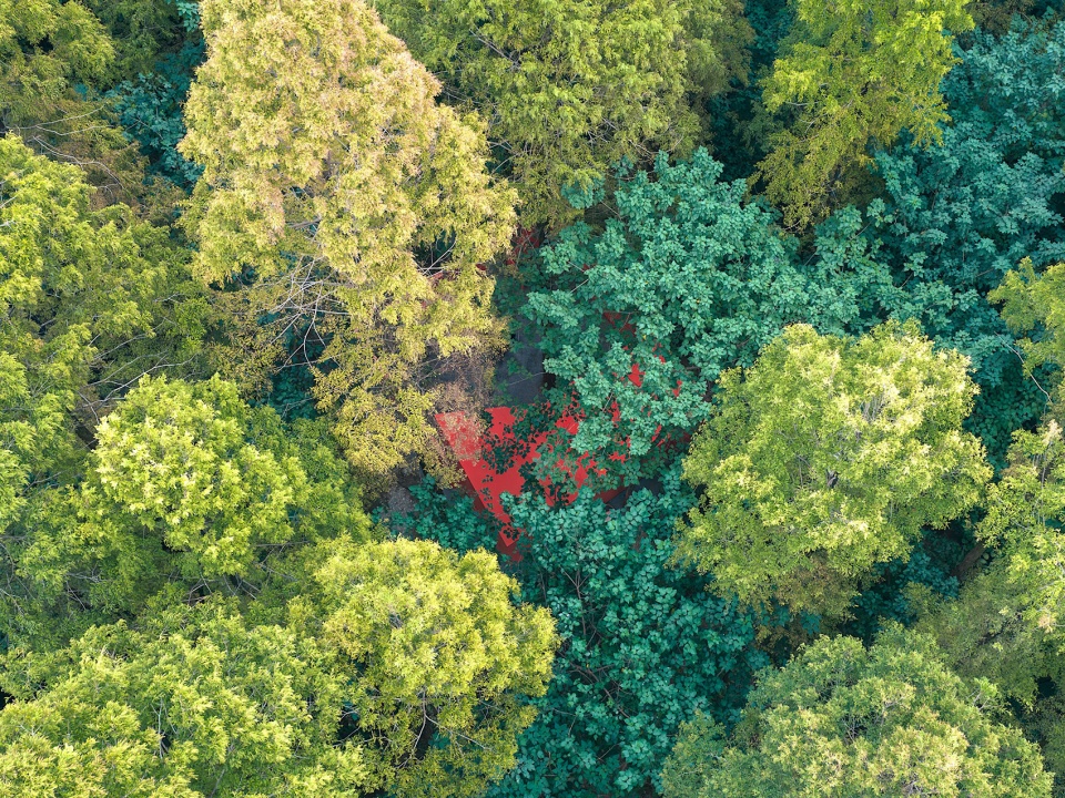 Hidden inside the metasequoia forest of Merryda Wiki World Secret Camp, Red Cabin is conceived as a compact holiday refuge and an experiment in how lightly a building can touch a living ecosystem. The site is described as a habitat for migratory birds, with more than a dozen treehouses dispersed among the trees, and the commission came from a client who is also a dancer, asking Wiki World to customise a cabin for time alone in the woods.