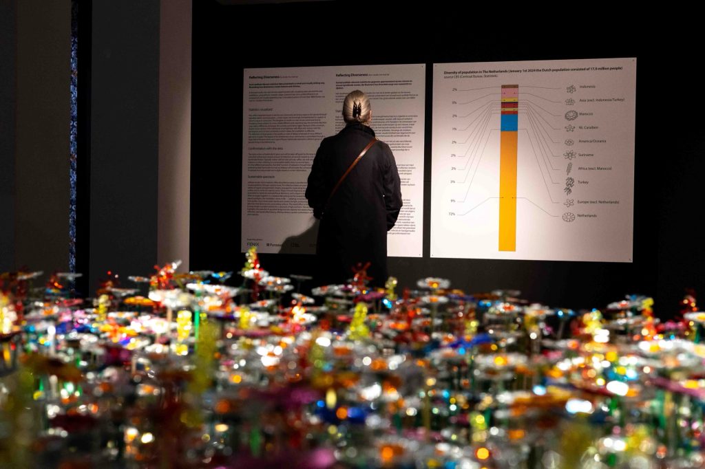 At its core, the installation explores how diversity contributes to balance and richness within contemporary Dutch society. Drawing on official data from the Centraal Bureau van Statistiek, the project translates numbers into form, scale and atmosphere, inviting visitors to encounter demographic realities not as charts or infographics, but as a shared physical landscape.