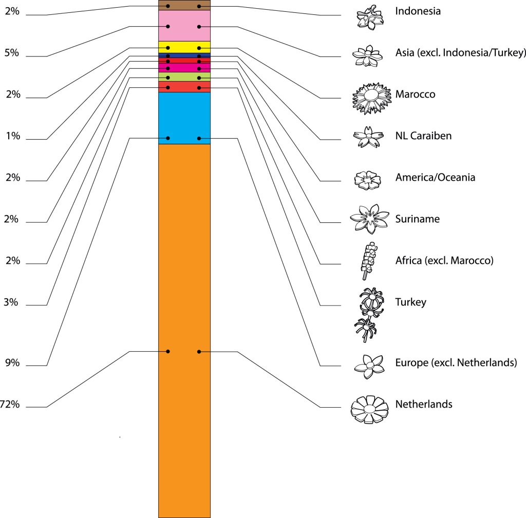 The installation is composed of 175 numbered boxes, each containing 50 flowers and representing a precise statistical cross section of the Dutch population based on 2024 CBS data. Each box is accompanied by a certificate of authenticity and contextual information. Following the exhibition, a curated selection will be available at the Fenix Museum shop in Rotterdam, with additional sets offered directly by the studio.