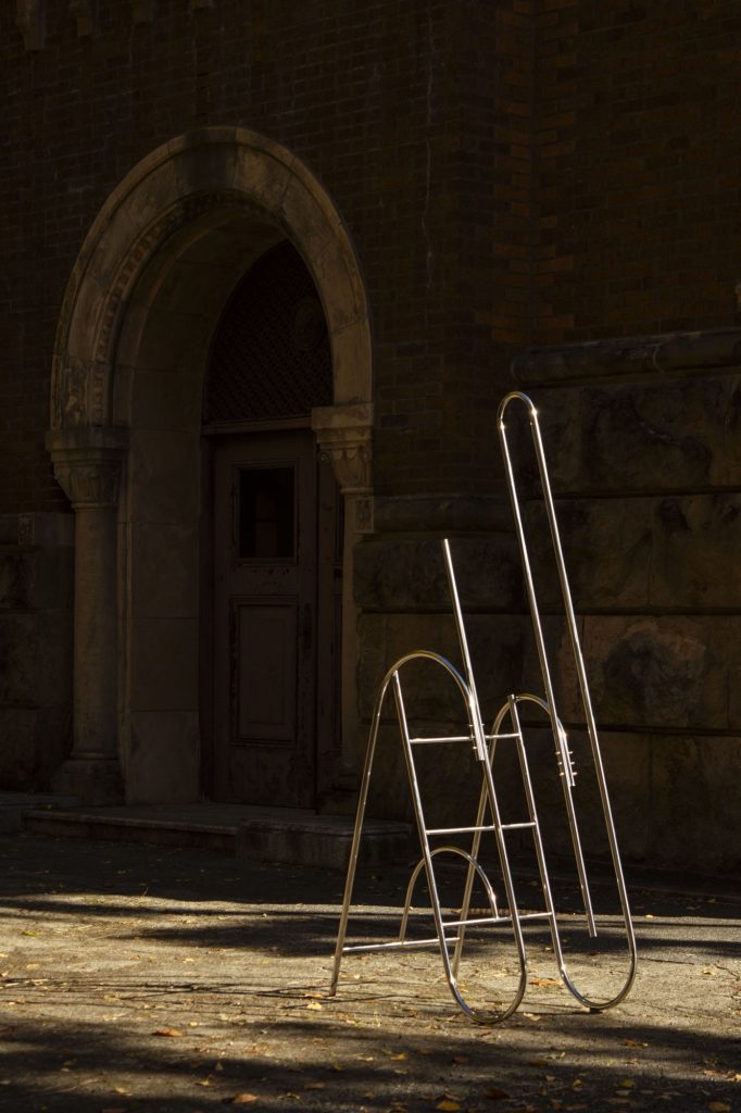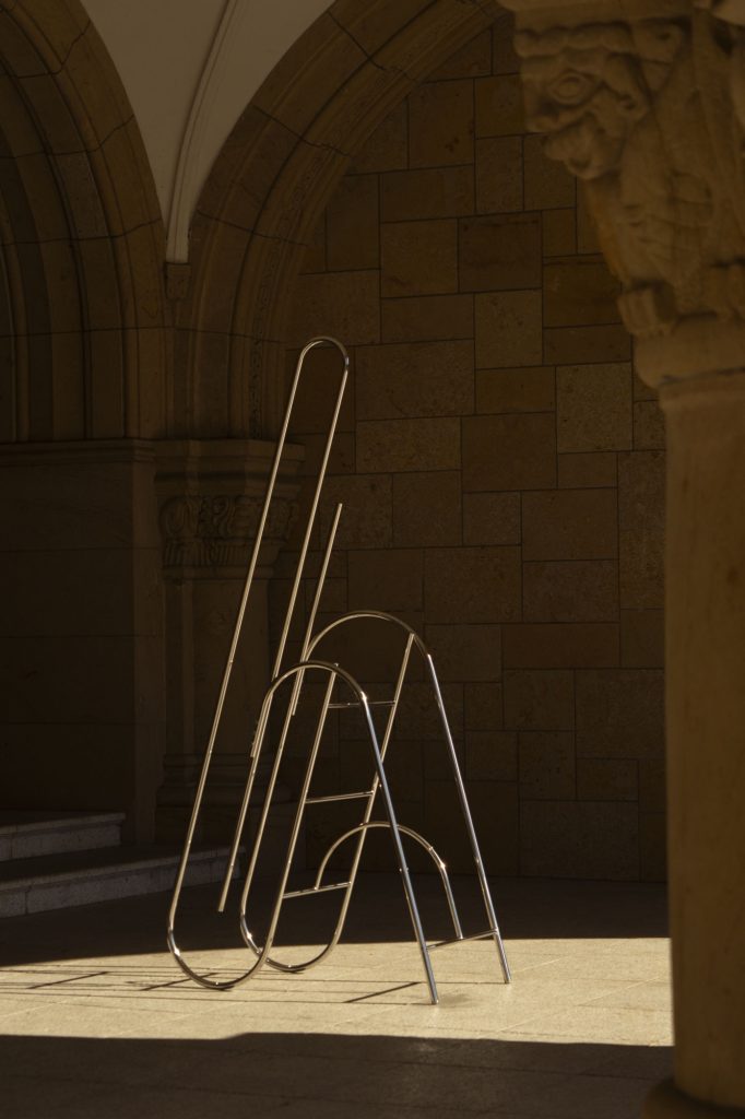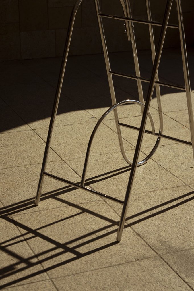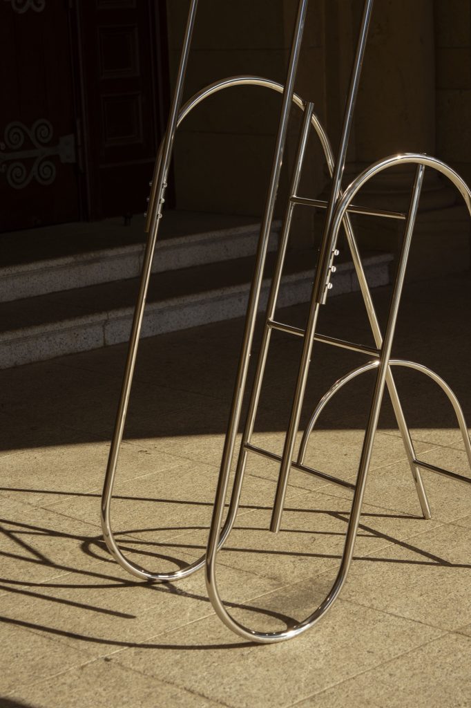 In Resonique, the linear stability inherent to ladder construction is combined with fluid, instrument like curves. Polished stainless steel pipes trace continuous lines that rise through the structure, producing a rhythm of arcs and verticals reminiscent of brass wind instruments. This interplay between precision and softness allows the ladder to operate simultaneously as a practical device and a sculptural element within the surrounding space.