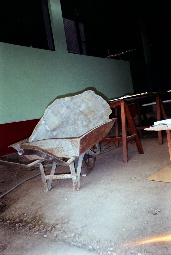 This modular construction allows the sculpture to remain structurally adaptable while preserving its compositional integrity. Process documentation also plays a role within the project. Analog photographs taken during fabrication and digital images of the final object function as parallel records, revealing both transformation and resolution within the work.