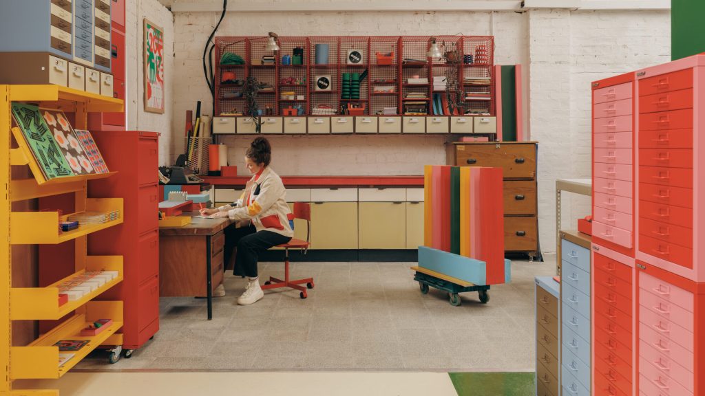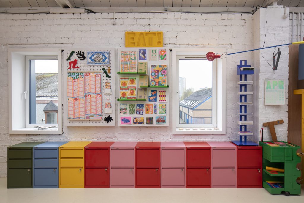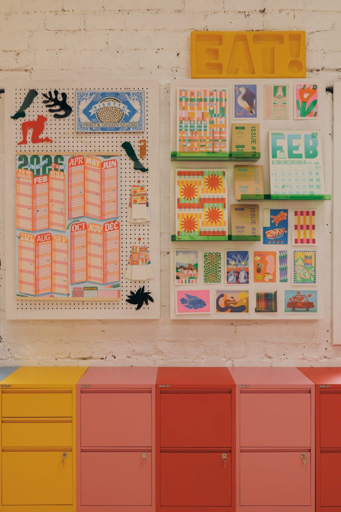 Founded by Marcella, RISOTTO Studio has built an international reputation for its vividly coloured stationery and printed works. After more than a decade at the Glue Factory creative hub, she has expanded into a 100 square metre former screen-printing workshop, transforming it into a new headquarters that reflects both the growth of the studio and its evolving ambitions. The project extends beyond function, positioning the workspace as a three-dimensional manifestation of her design approach.