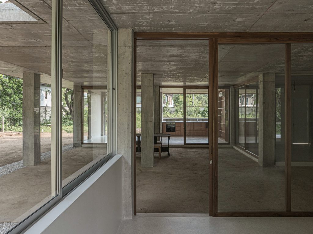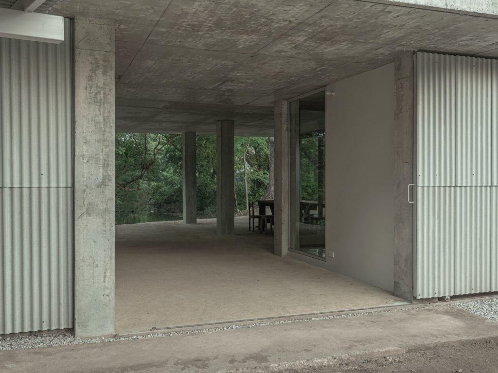 The project’s threshold is where its attitude becomes clear. When the gate like outer wall opens, the house stops behaving as an object and begins to act as ground. Boundaries soften as the earth floor, garden, river edge, and street align into a continuous field, encouraging daily life to spill outward and environmental forces to move inward. Sliding doors and partition walls sit within the column matrix to form three main zones under the roof, with no fixed hierarchy, only adjustable degrees of enclosure.