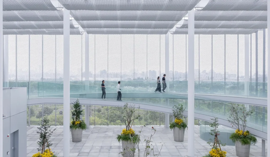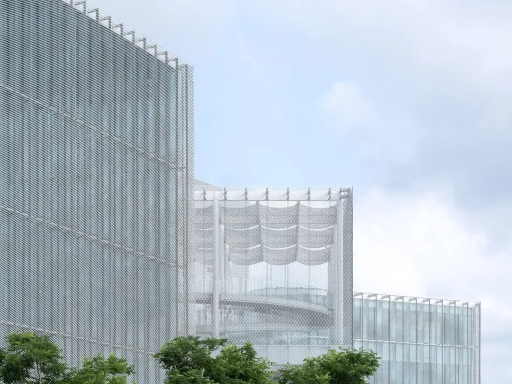 If Taichung resists being read as an architectural object, it is because performance takes priority over representation. The dual-layer envelope wrapped in expanded-metal mesh is easy to describe in optical terms, as reflective, diffuse, and dematerialising. But its significance is operative. The mesh is not there to supply a signature pattern. It is there to mediate, by modulating brightness, softening edges, and registering weather and time.