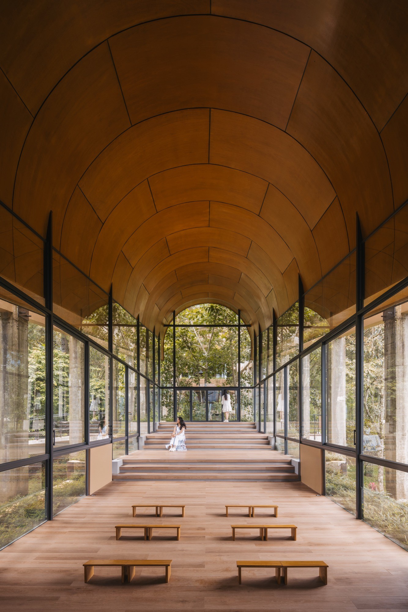The central tunnel acts as an ambiguous spatial threshold that slows movement and heightens contemplation. Can you elaborate on how you designed this sequence of compression, release, shadow, and brightness to transform arrival into a ritual experience?