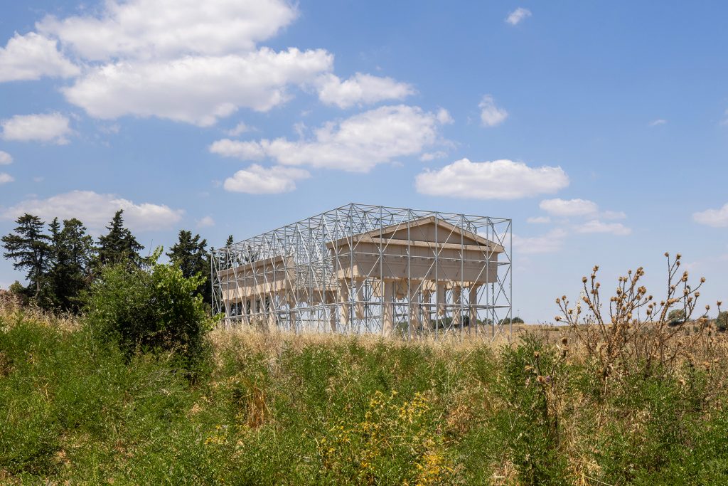 The artworks arise gently from a richly textured landscape shaped by millennia of human and natural forces. Herakleia becomes a living palimpsest where time folds, and archaeology, ecology, and artistry intertwine. Each work interprets the site from a distinct angle: Inverse Ruin manipulates architectural logic to the point of inversion, opening a visual void that reanimates the temple’s volumes; Chora introduces a tactile sculptural path that traces the lineage between ritual gesture and natural offering; Arbosonica adds an aural dimension that amplifies the ecosystem’s inner resonance. Together, these contributions build a collective identity in which cultural codes interlace and respond to each other, shaping an open framework for experimentation at the threshold of art, architecture, and landscape.
