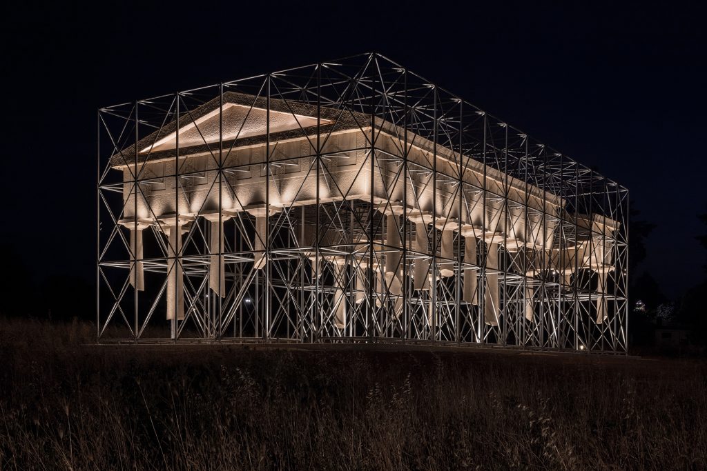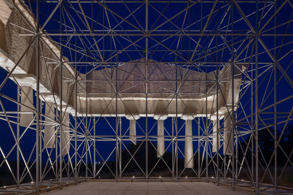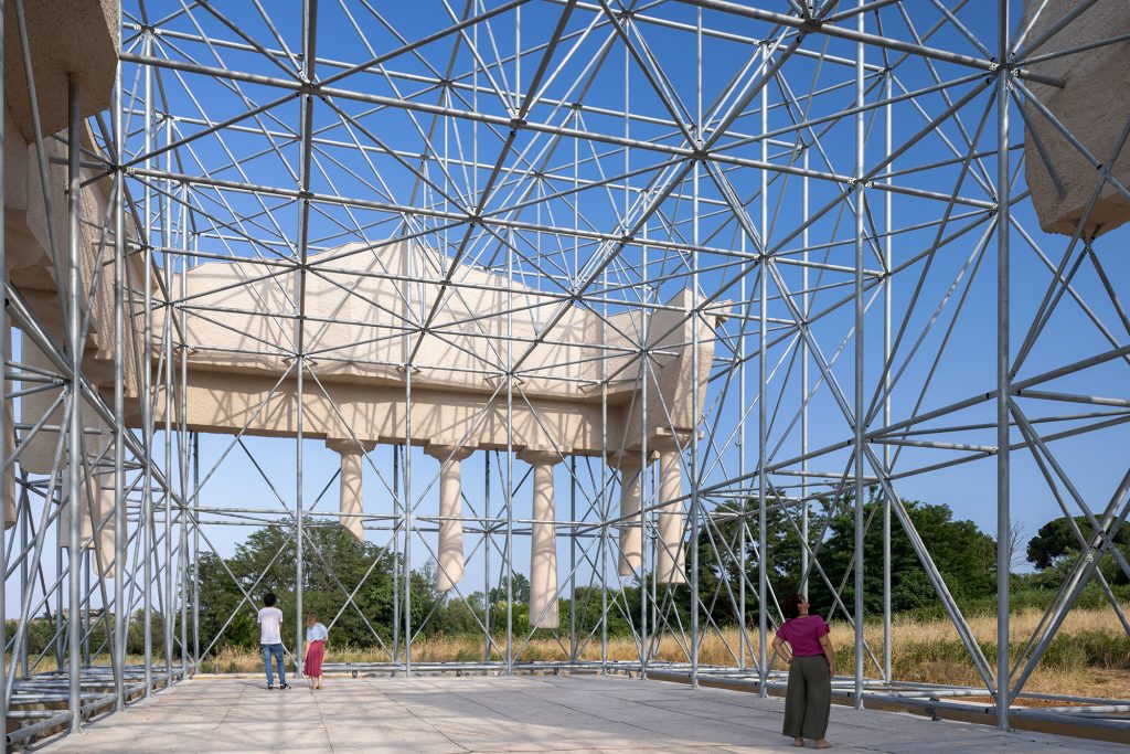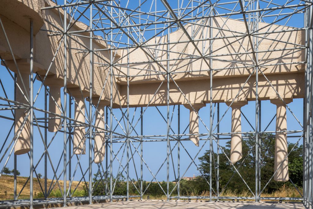 Antonio Oriente recalls that the concept for Inverse Ruin emerged during the initial artistic residency in 2021, when the team immersed themselves in the living culture of Basilicata to construct a chronological bridge between Magna Graecia and the present. He describes the approach of Gijs Van Vaerenbergh as an intelligent inversion of material presence, one that restores visual space to the archaeological remains while foregrounding the temporal fragility embedded in the ruins. Instead of evoking restoration or reconstruction, the installation introduces a new inhabitant of the Park—simultaneously foreign and native, vanished and alive.