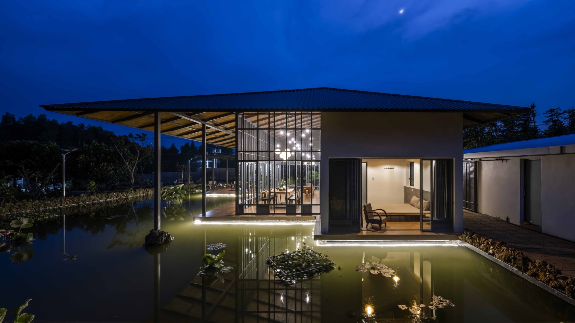 Located in Dong Nai, The Second Farmstay is a semi prefabricated rural house that integrates orchards, water infrastructure and passive climate design into a contemporary farmstay model.