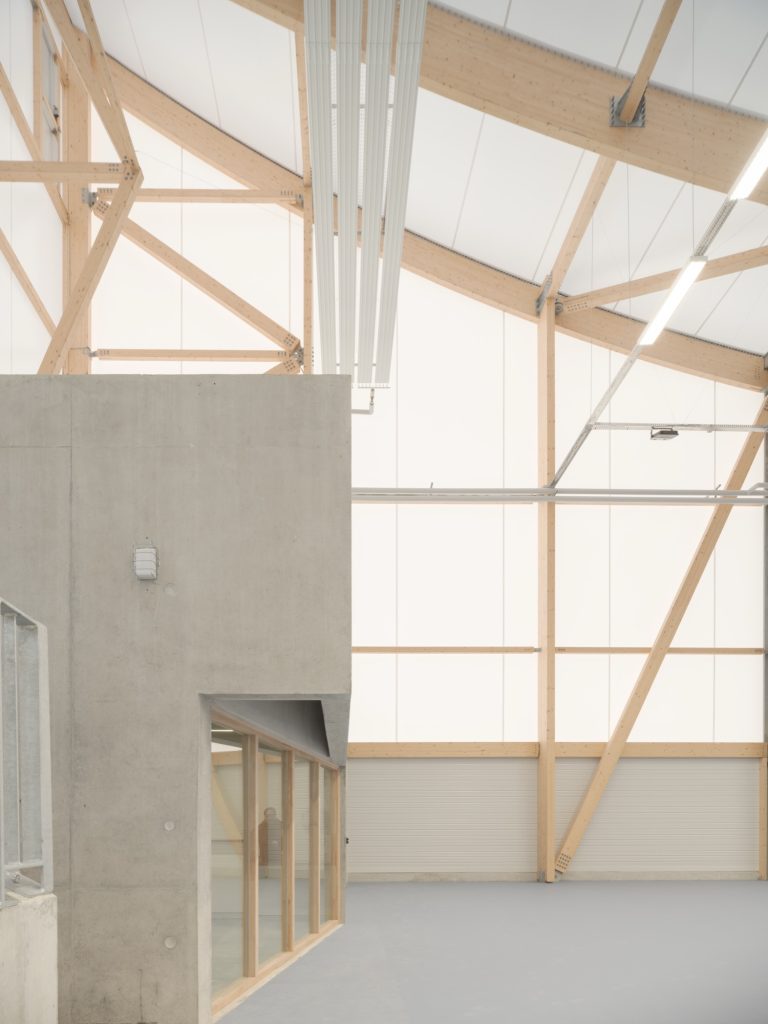 This duality of mass and membrane articulates the functional differences within the programme while maintaining a cohesive architectural identity.