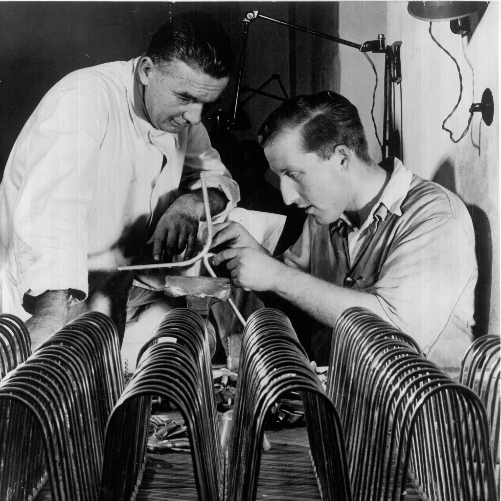 It is tempting to frame this as a graduation story, craft becomes industrial design, Vienna becomes global. But the Auböck ecosystem doesn’t move by replacement; it moves by expansion. Carl III brings new knowledge back to Vienna. He is influenced by international designers like George Nakashima and Isamu Noguchi, and by what his son later calls the era of prefabrication. He applies prefabrication ideas in a Vienna housing estate built with Roland Rainer. And inside the workshop, the boundary between craft and industrial design becomes porous: prototypes and models are produced, tested, refined.