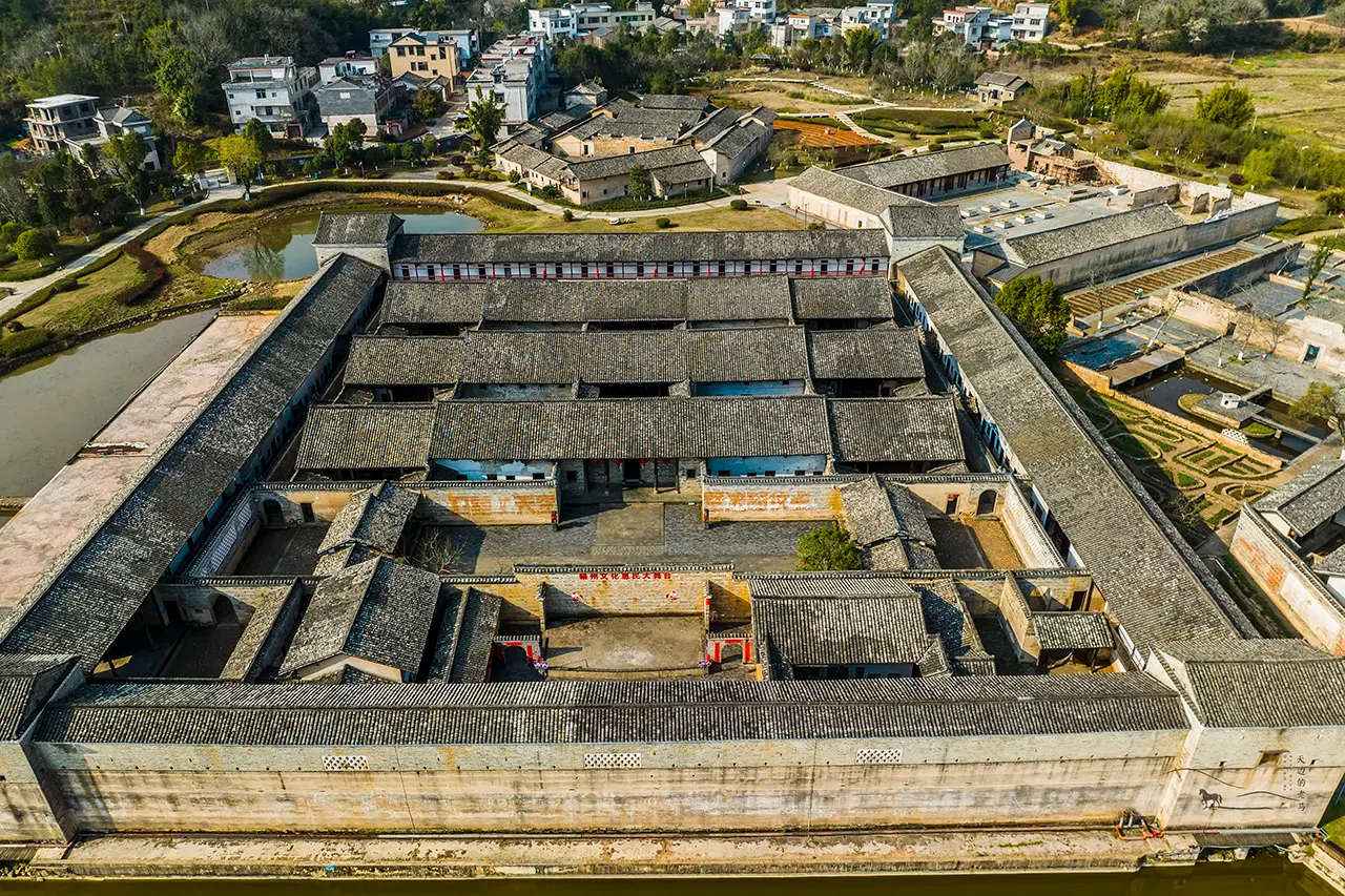 These are the weiwu (围屋), Hakka walled or enclosed houses concentrated in the Gan’nan region of southern Jiangxi. Long overshadowed internationally by Fujian’s circular tulou, weiwu represent a broader and more adaptable tradition of enclosed living. Official reporting notes that Longnan alone contains 376 Hakka walled complexes, accounting for more than seventy percent of those preserved in southern Jiangxi, and describes their internal composition as halls, storehouses, living quarters, and internal squares within a single fortified boundary.¹