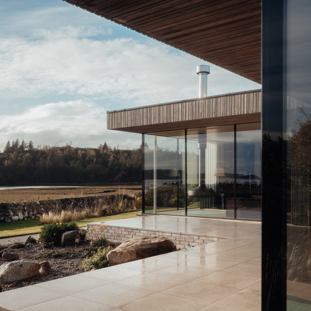 Glazing plays a central role in mediating between interior life and the surrounding landscape. Large openings frame uninterrupted views across the River Urr estuary, while allowing the rhythms of tide, weather, and light to permeate the house. Rather than treating the landscape as a backdrop, the design draws it into daily experience, reinforcing Brown and Brown’s longstanding commitment to architecture that belongs unmistakably to its place.
