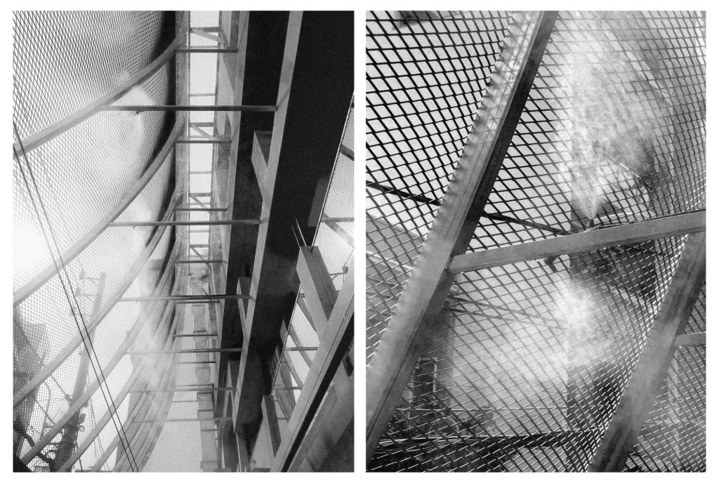 MESH AND MIST, CONCRETE AND GLASS BLOCK