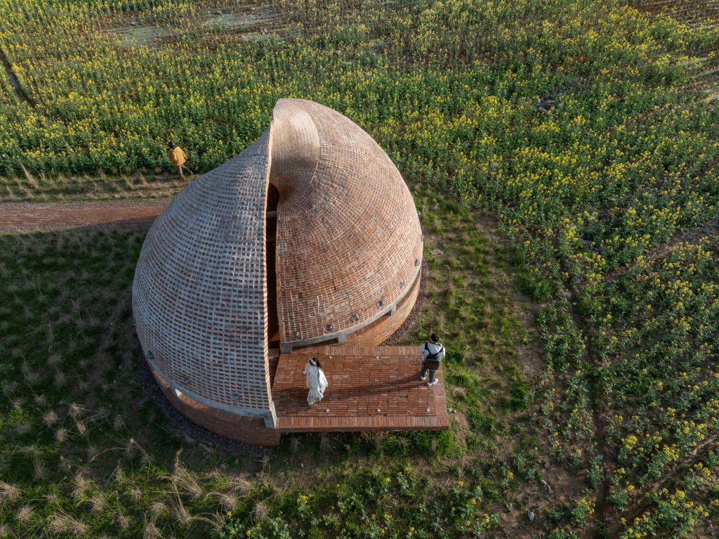Set within a high grass field in rural Zhejiang Province, China, the Concept Library takes the form of a spiral shell that turns reading into a spatial act. The project tests a precise tension: how a contemporary, almost sculptural geometry can still feel grounded in vernacular material culture.