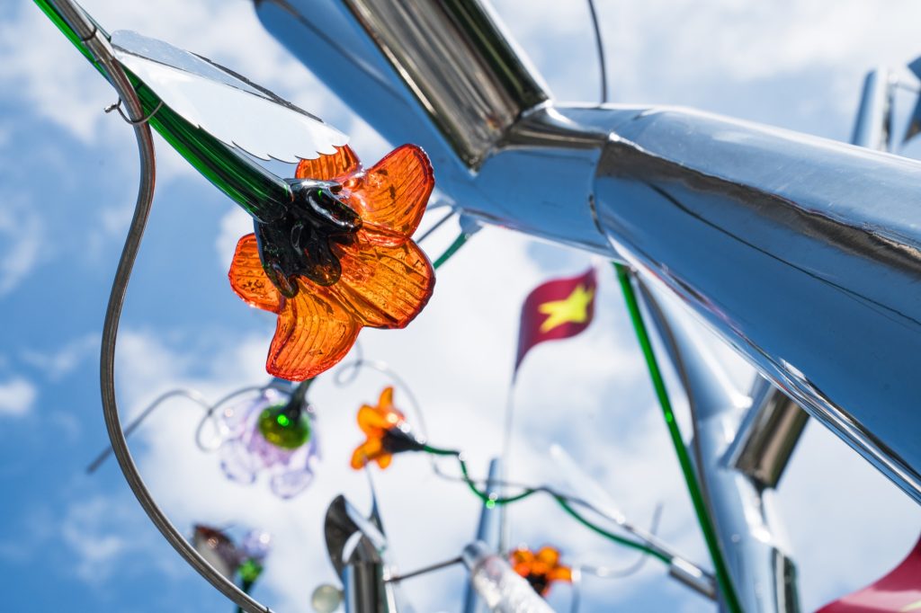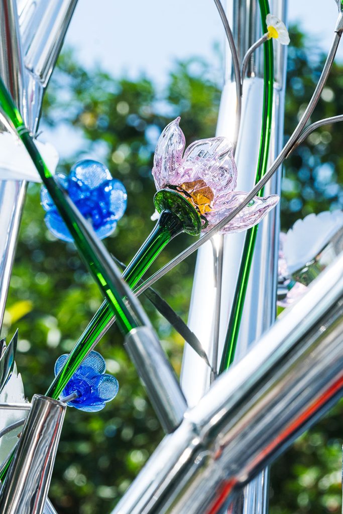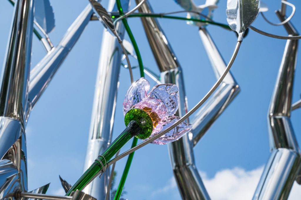 This collaborative process functions as both preservation and transformation. Traditional techniques are not frozen in nostalgia but reactivated within a contemporary artistic language. Every weld seam, ceramic fragment, and glass petal bears the imprint of human labor and knowledge. The work embodies a collective intelligence, where individual skill contributes to a unified whole.