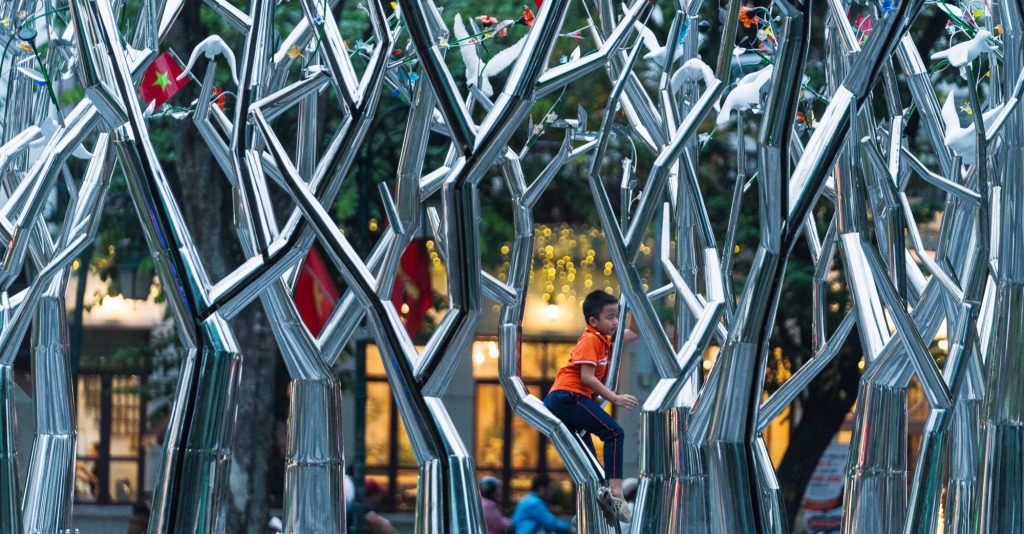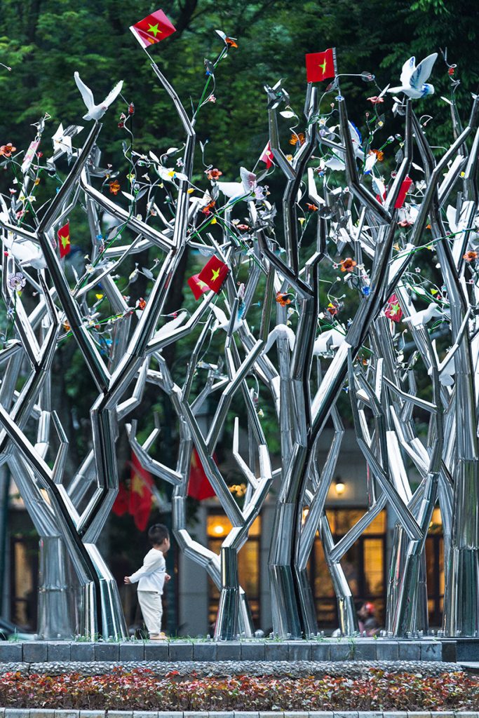 Designed to withstand Hanoi’s demanding climate, the installation negotiates heat, humidity, rain, and wind. Its material endurance parallels its conceptual ambition to remain relevant across time, absorbing the city’s constant flux without losing its symbolic clarity.