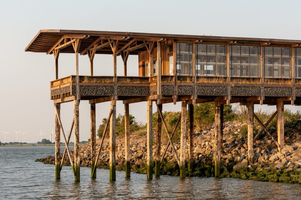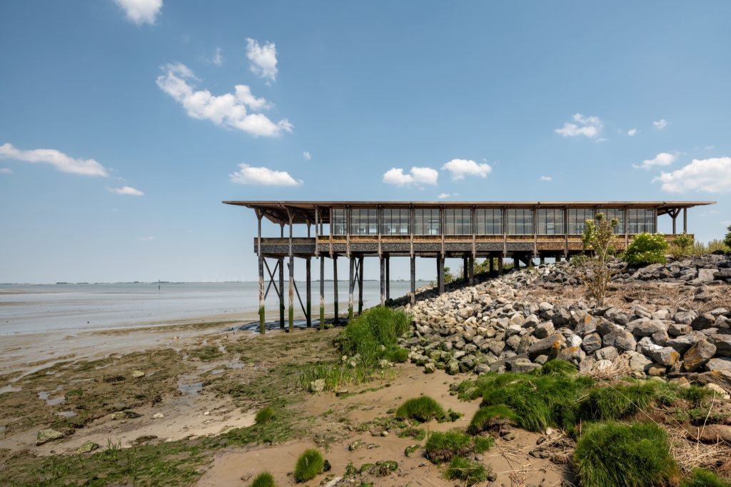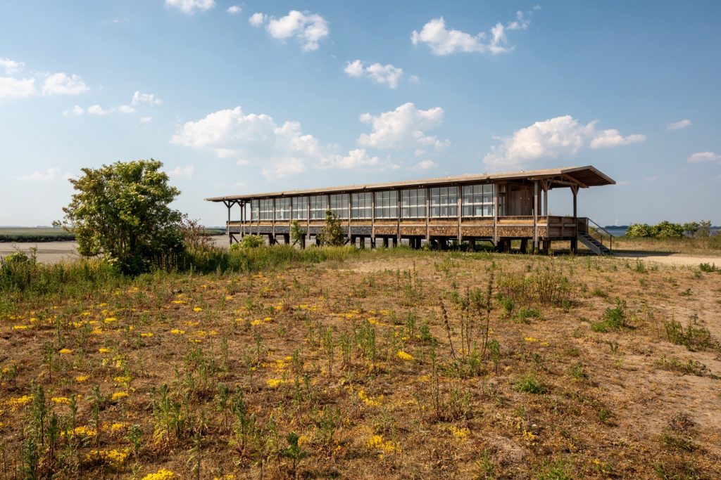 Set on the gas plateau with its base reaching into the estuary, the Veldstation supports fieldwork that runs round the clock during the spring season, when ecological activity intensifies and observation cannot pause for nightfall. At the same time, it welcomes visiting groups, expanding its role beyond science into environmental education, where the experience of the site becomes part of the lesson.