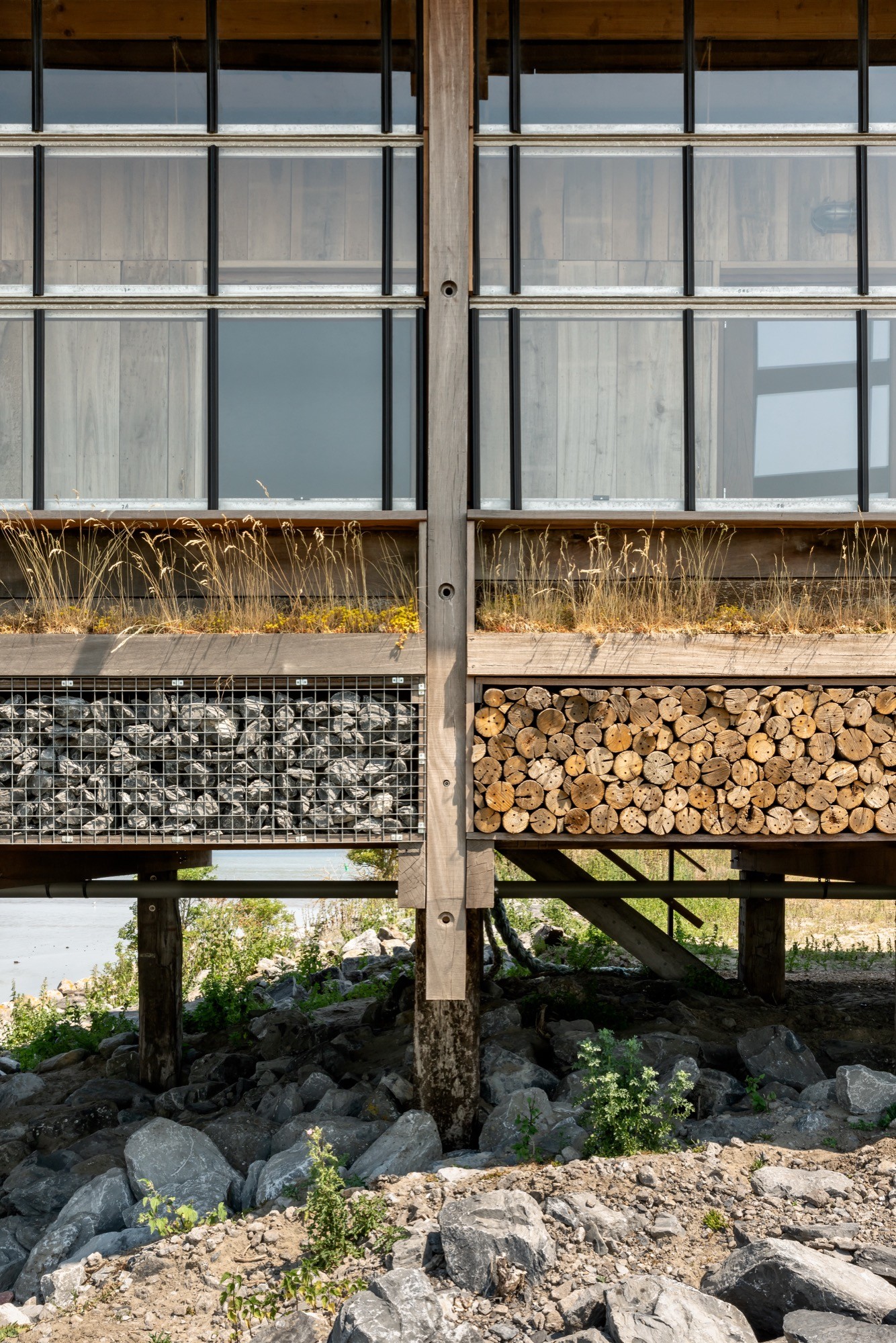 If the walls offer the detail, the roof offers the promise. Conceived as a safe upper ground, it becomes a nesting territory for waders and gulls, species that depend on quiet, elevated zones where disturbance is limited and sightlines are long. In a region shaped by water management, land reclamation, and shifting ecological boundaries, the roof reads as a deliberate addition to the available habitat, a new surface returned to the non human world.