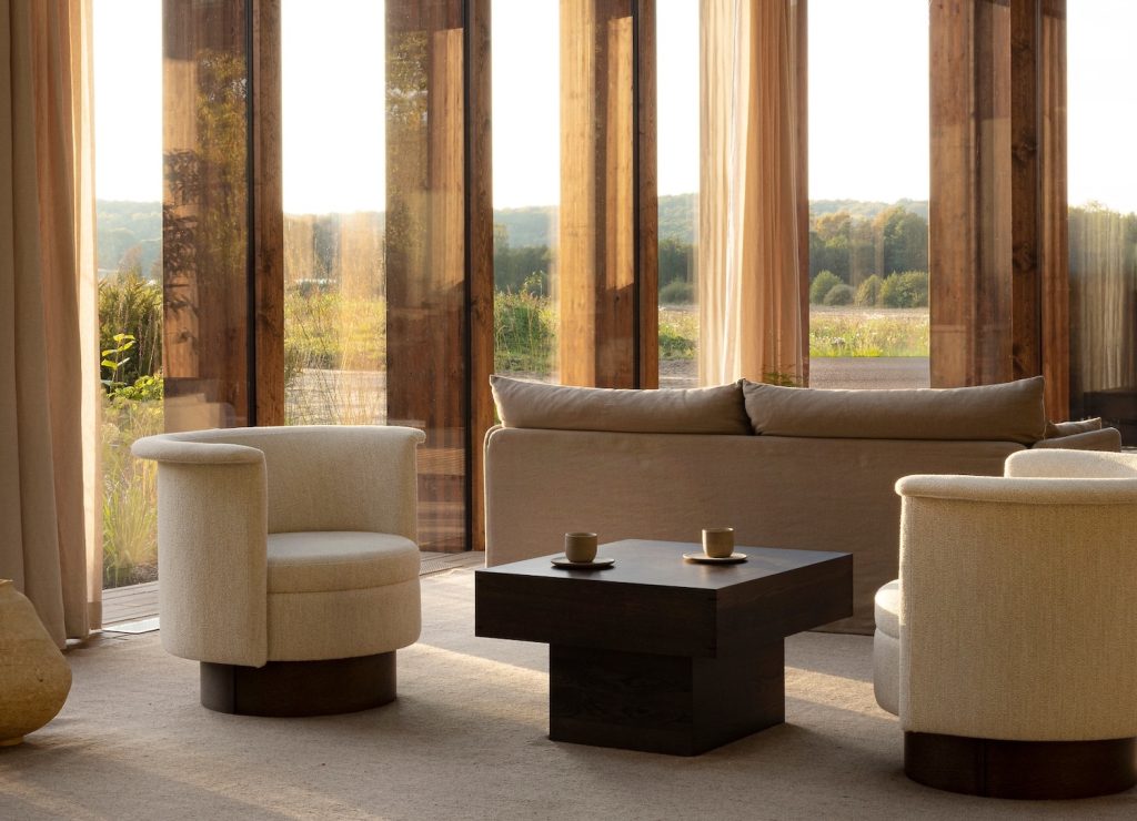 Set in the rolling terrain of Tvååker, Sweden, Vinhuset is the newest hospitality retreat at Ästad Vingård, designed by Norm Architects. It follows Restaurant ÄNG and the lakeside Sjöparken as the third built chapter in the estate’s long conversation between architecture and landscape. Where the earlier projects established a language of restraint and heightened attention, Vinhuset extends it into something more grounded and connective, a place that gathers the estate’s dispersed rituals into a coherent whole.