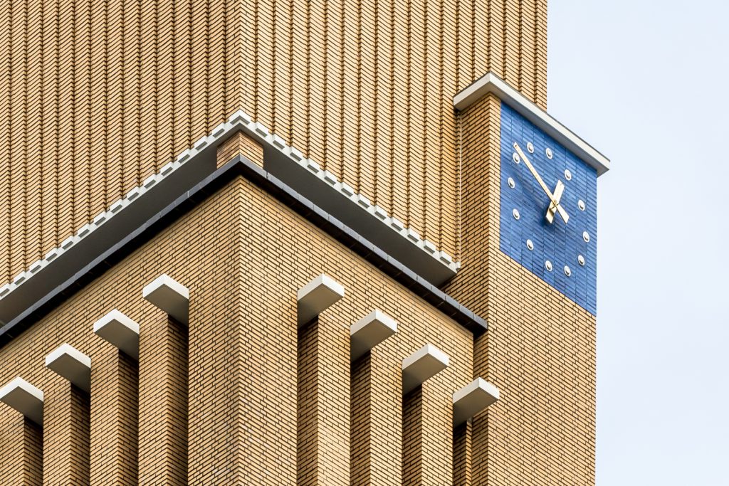 Material decisions are central to this effect. A concealed concrete-and-steel load-bearing structure allows edges to read as thin and planes to appear weighty yet buoyant. Dudok developed an oblong-format brick specifically for the project, reinforcing horizontality while enabling subtle shadow joints to register light across the façade. The calm of the building is not stylistic restraint alone, but the product of constructional precision.