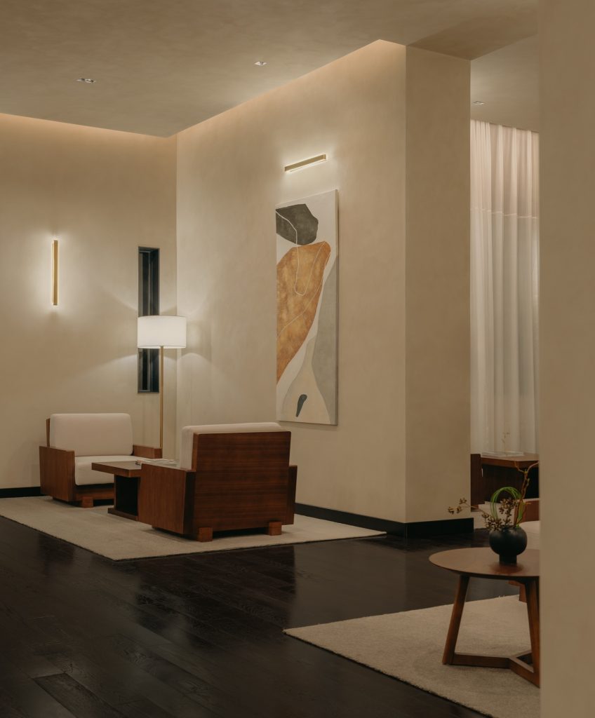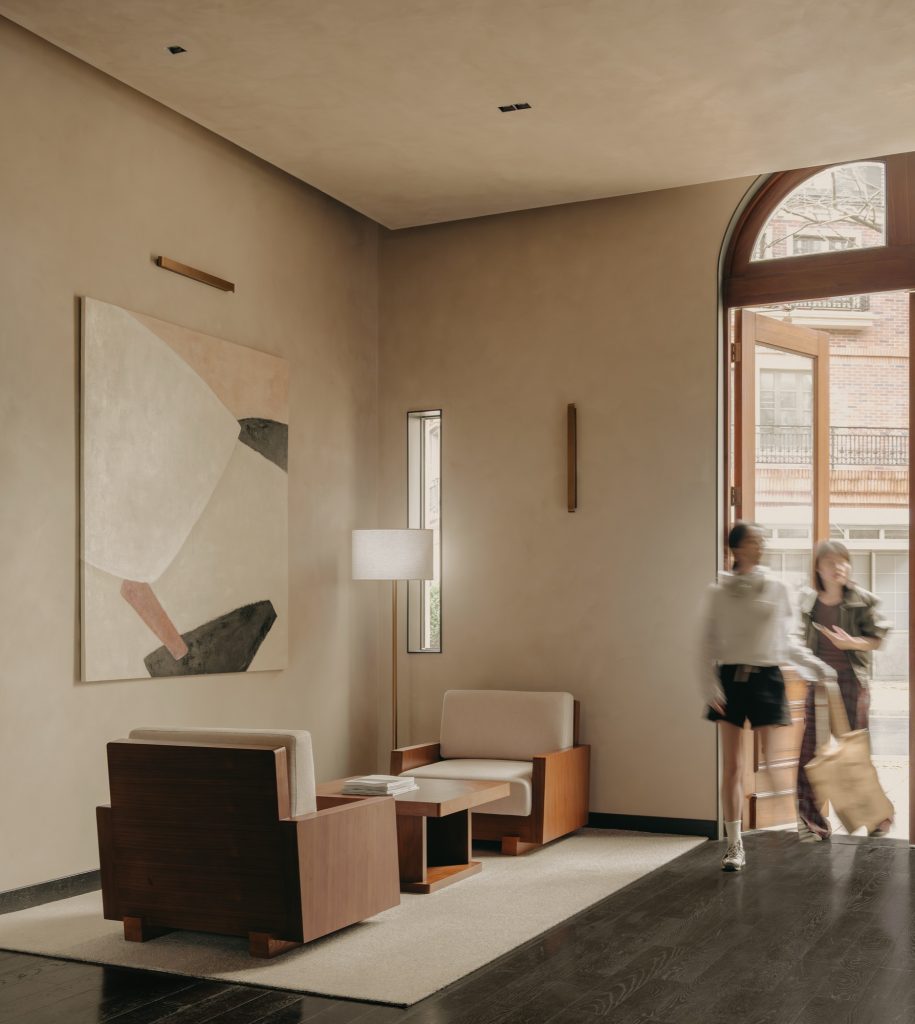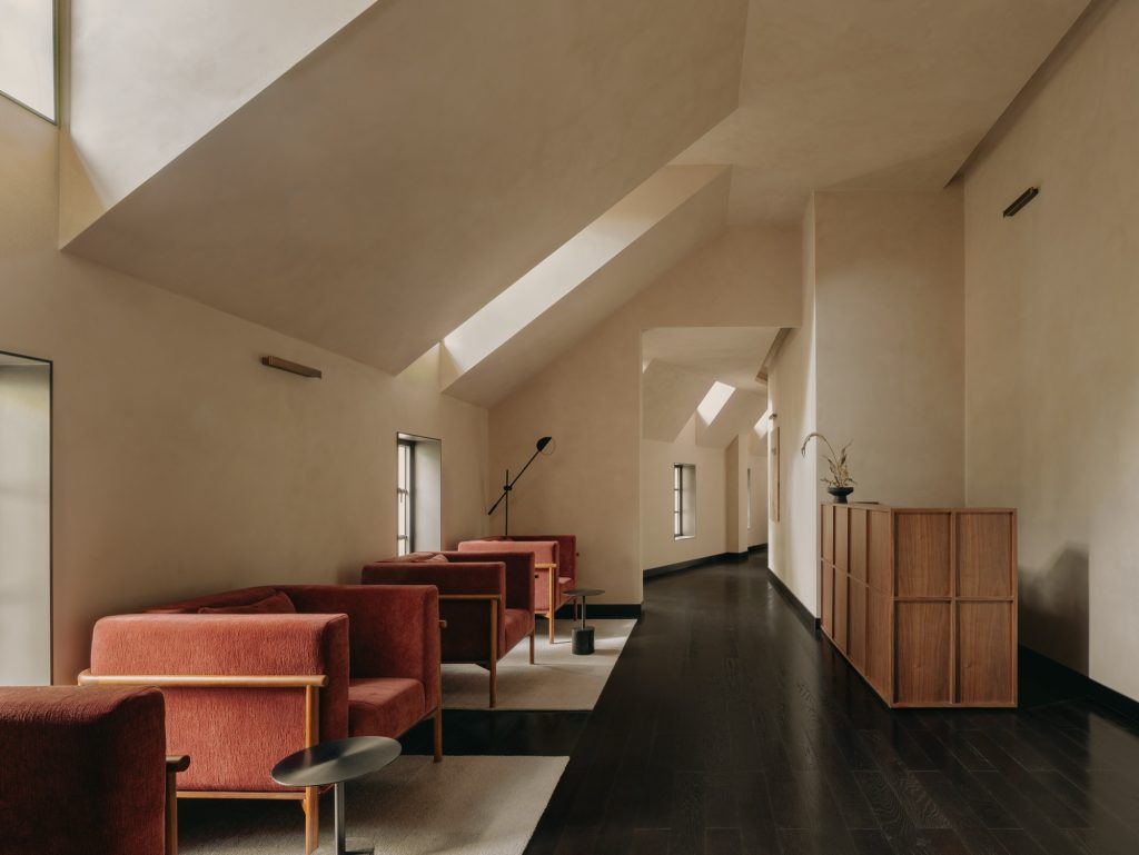 Interior elements are deliberately simplified, reducing visual noise and enabling adaptability. This restraint allows the spaces to accommodate future transformations without losing coherence. The lobby is articulated as a series of smaller zones defined by furniture and partitions, slowing circulation and supporting a more measured rhythm of occupation.