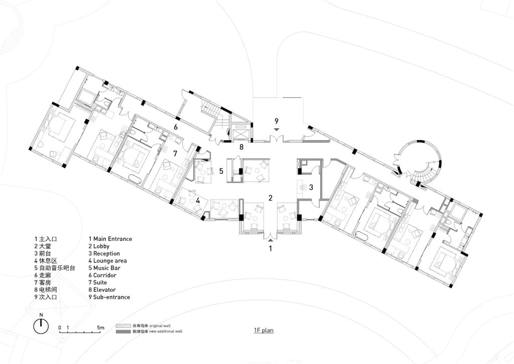 Set within the central town of the Aranya Jiulong Lake community in Guangzhou, Aranya Jiulong Lake Community, YIN HOTELS occupies the former Grand Building of the Princess Hotel, a structure defined by its European stylistic lineage. The renovation, led by PLAT ASIA, approaches the building not as a static artifact but as a living framework in which memory, structure, and contemporary hospitality can intersect.