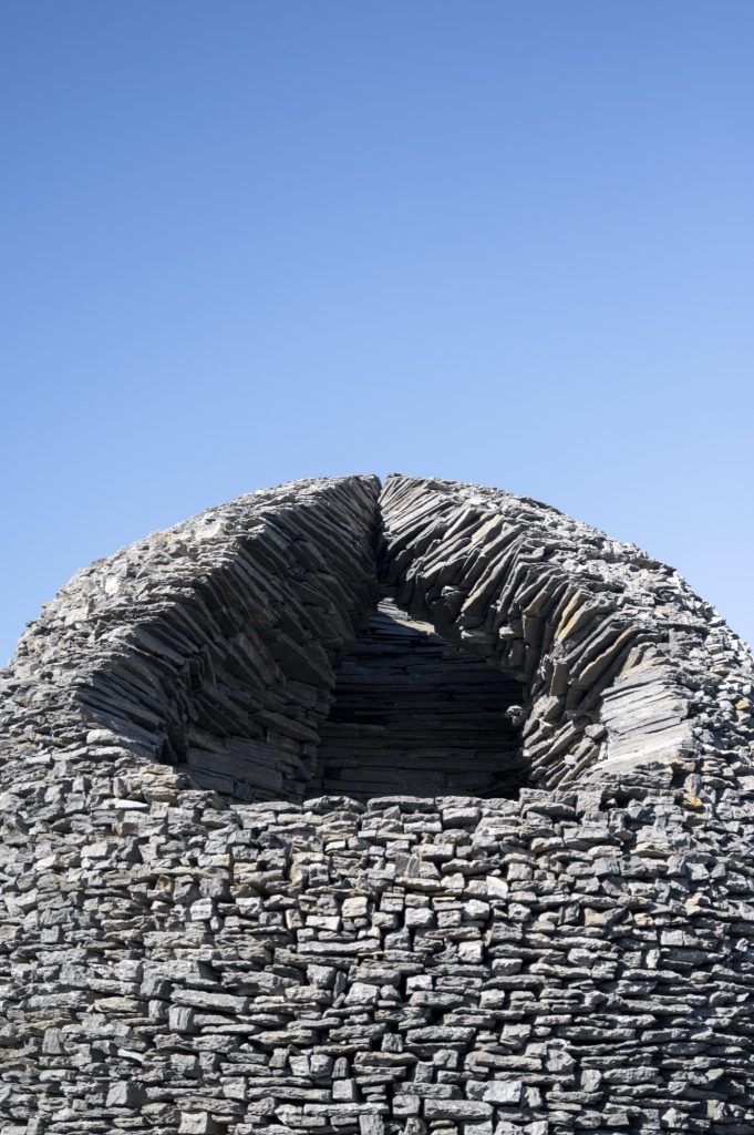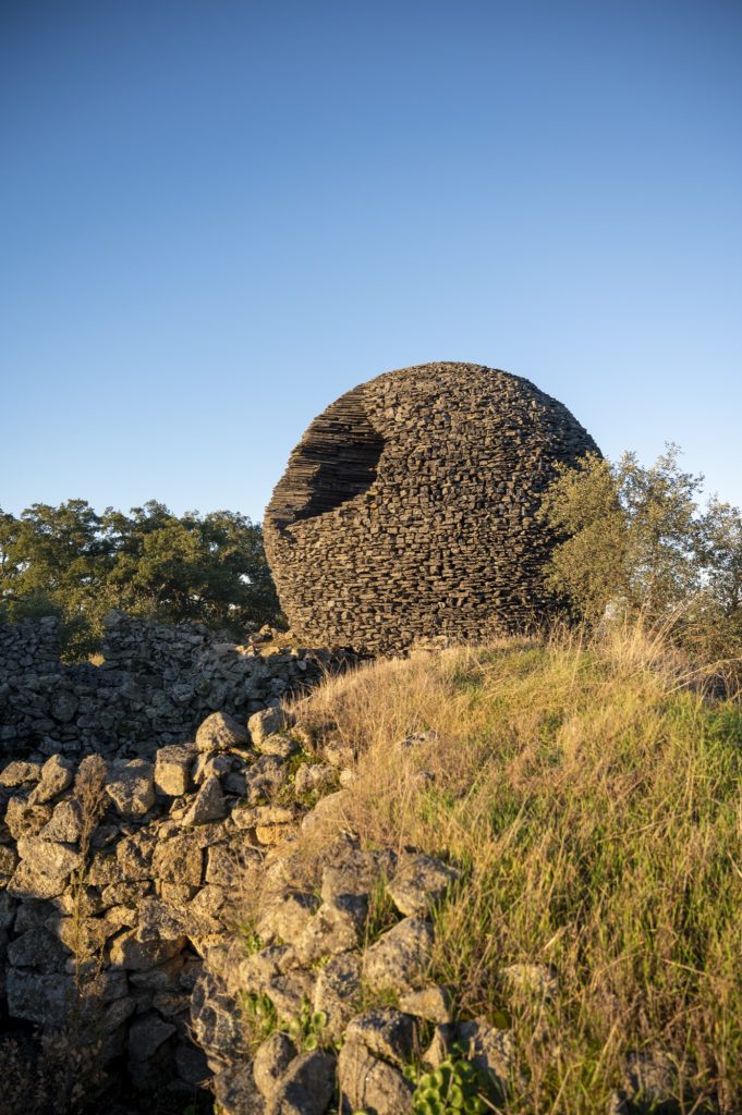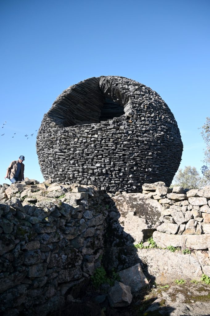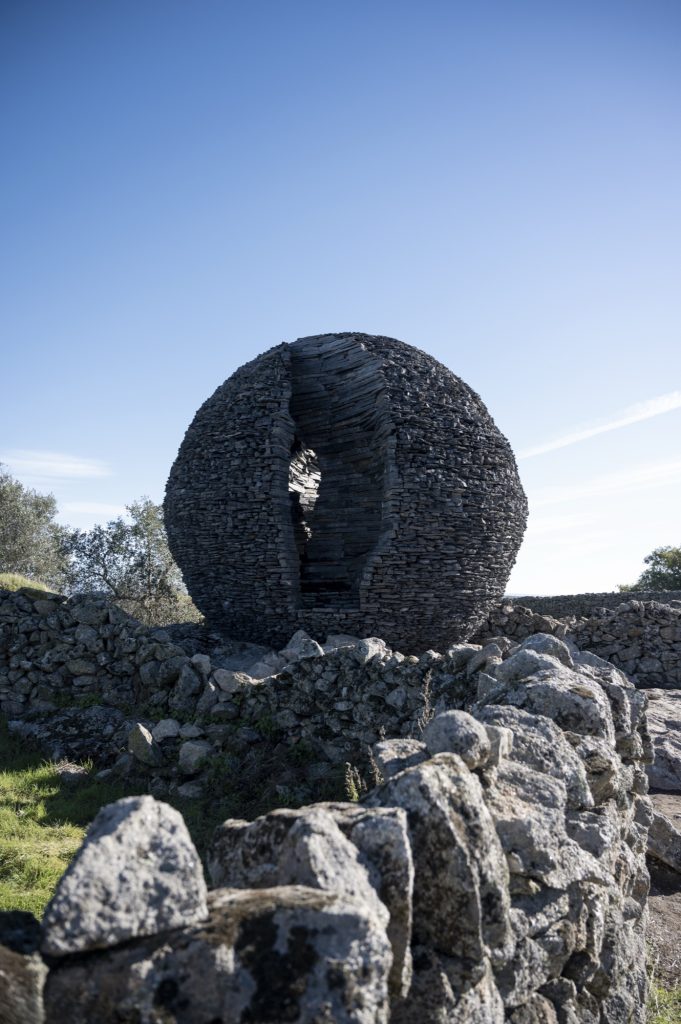 Set within the windswept border landscape of Salvaterra do Extremo in central Portugal, Ninho Globo emerges as a monumental, hand built stone sphere that resonates with both geological depth and symbolic intensity. Constructed entirely from local black schist, the work evokes at once a celestial body, a protective nest, and a fragment of the land’s deep mineral memory. More than an object to observe, it invites a direct physical encounter, questioning how we inhabit the world, how we share common ground, and how architecture and art can register the passage of time.