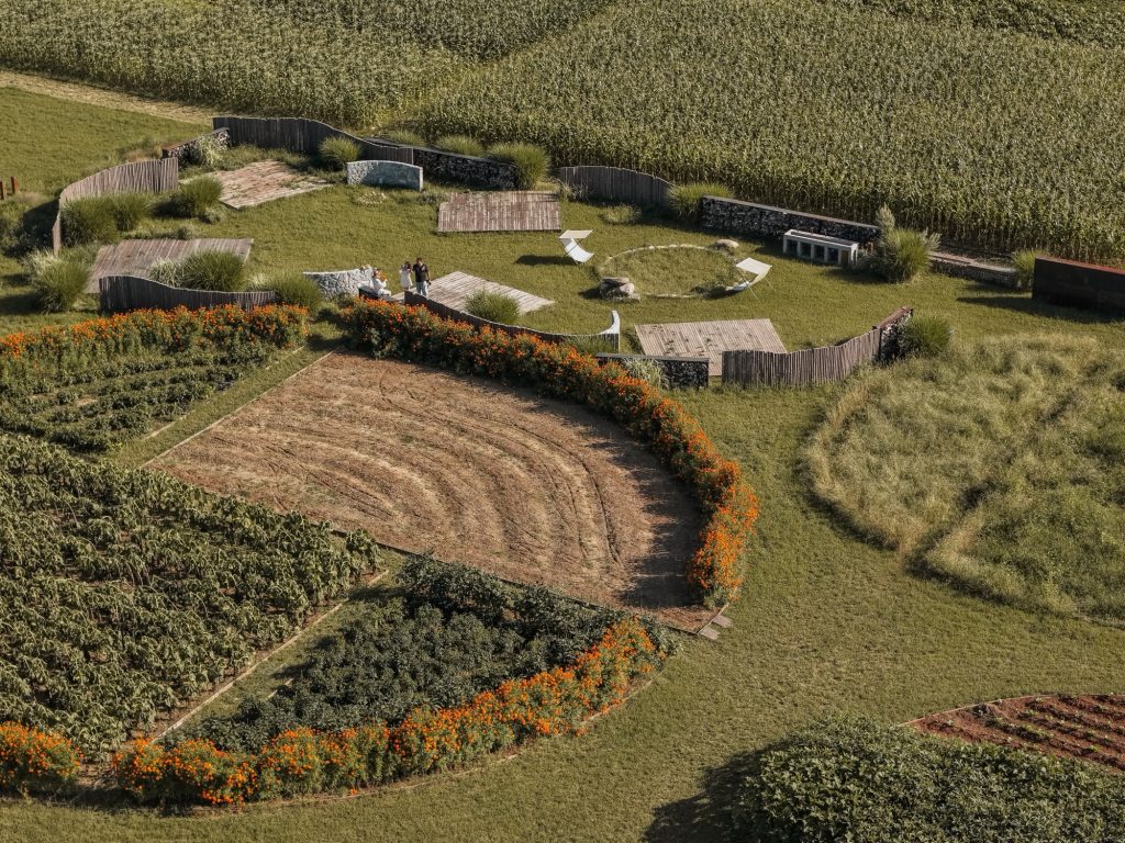 Designed by Fon Studio, the project draws from the ancient notion of “Zao”, a primitive cooking device formed from earth and stone, once central to rural households. Rather than treating agriculture as a backdrop, the design integrates farming as an active spatial and social force. Dining, agricultural experience, and family interaction coexist, redefining the idea of “from land to table” as a lived, sensory continuum rather than a linear process.