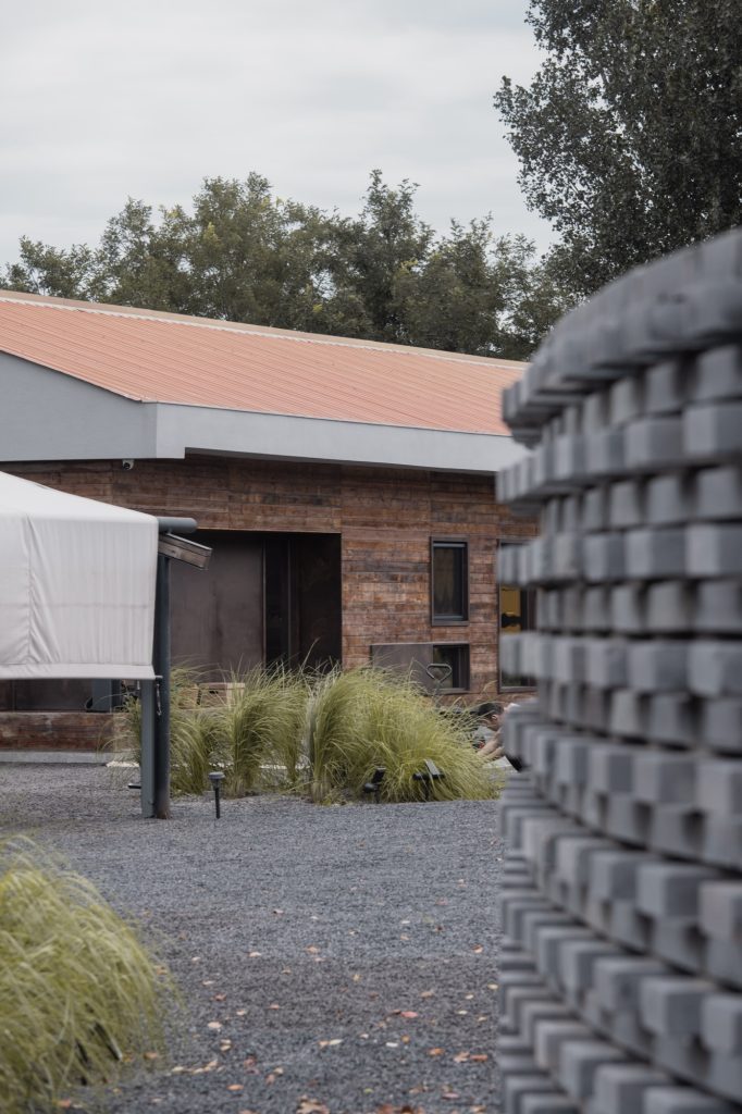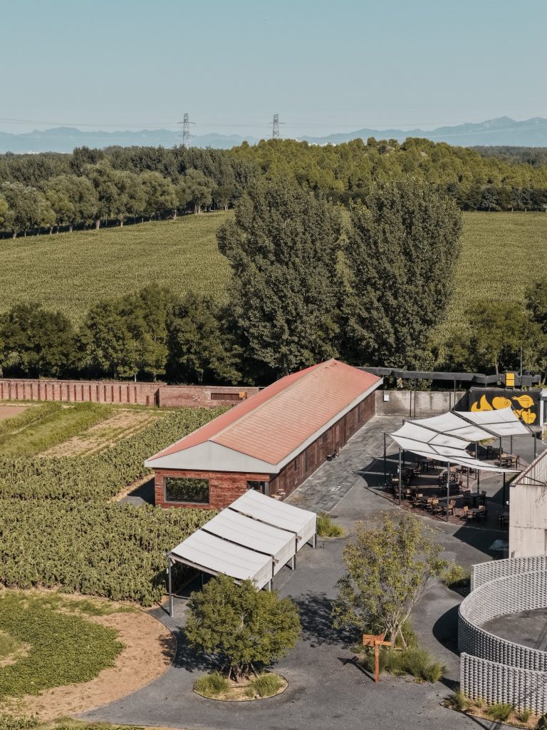 Irregular circular forms are subtly introduced at the entrance, within planting areas, and across outdoor dining spaces. As crops grow and seasons shift, vegetation softens these geometries, dissolving the boundary between built form and cultivated land. Infrastructure elements such as irrigation and internal transport systems balance practicality with a deliberately restrained rural expression. Gravel embankments and preserved native weeds contribute to the restoration of local ecology, reinforcing the project’s environmental grounding.