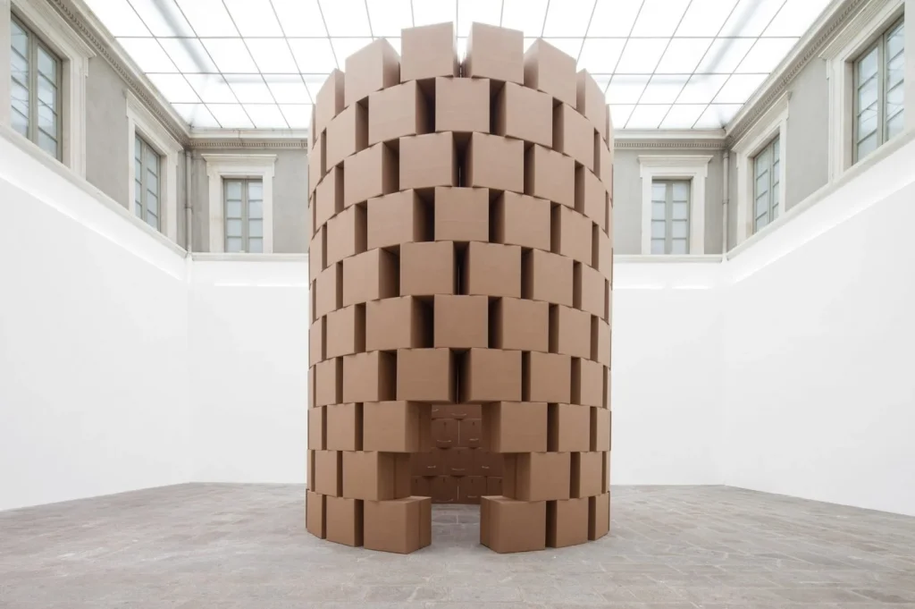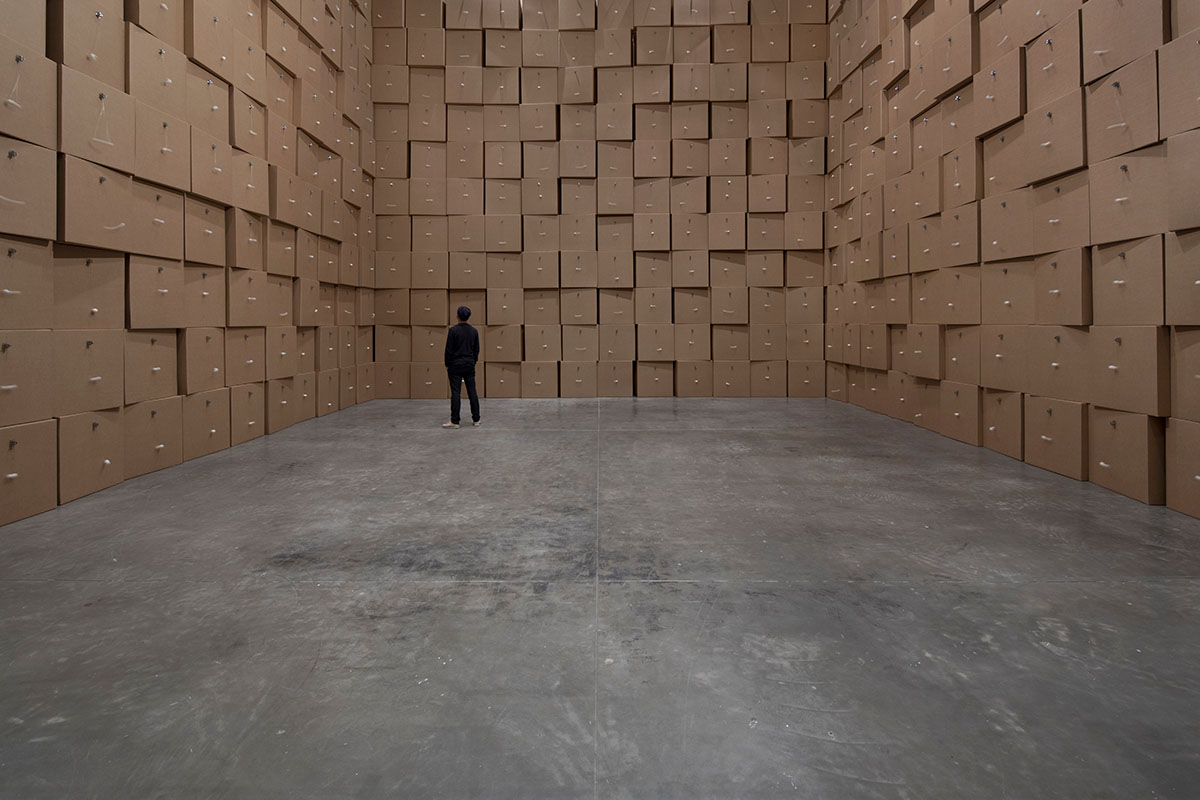 Immersive cardboard wall enclosure, Zimoun 2017 exhibition view. Credit: © Zimoun