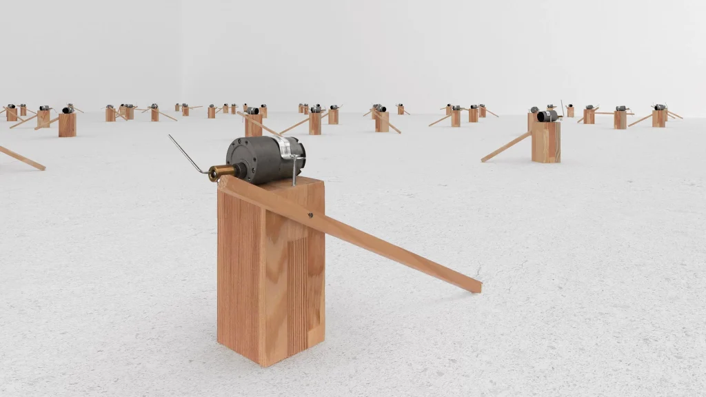 In a culture saturated by digital interfaces, Zimoun’s analogue systems carry particular weight. The relationship between cause and effect remains visible. Each sound corresponds to a mechanical action.